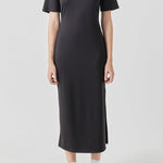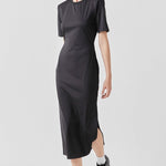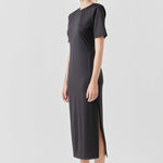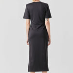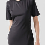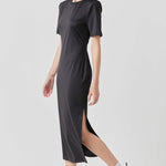 Introducing the Power Shoulder Maxi Dress the ultimate statement piece for any occasion! The round neckline and short sleeves provide a classic touch while the shoulder pads add a bold and powerful element. Complete with a side slit detail this dress exudes confidence and femininity. Made from high-quality fabric it offers comfort and style in one package. Perfect for adding a touch of sophistication to your wardrobe this dress is a must-have for every fashion-forward woman. Shop now and stand out from the crowd with our Power Shoulder Maxi Dress!