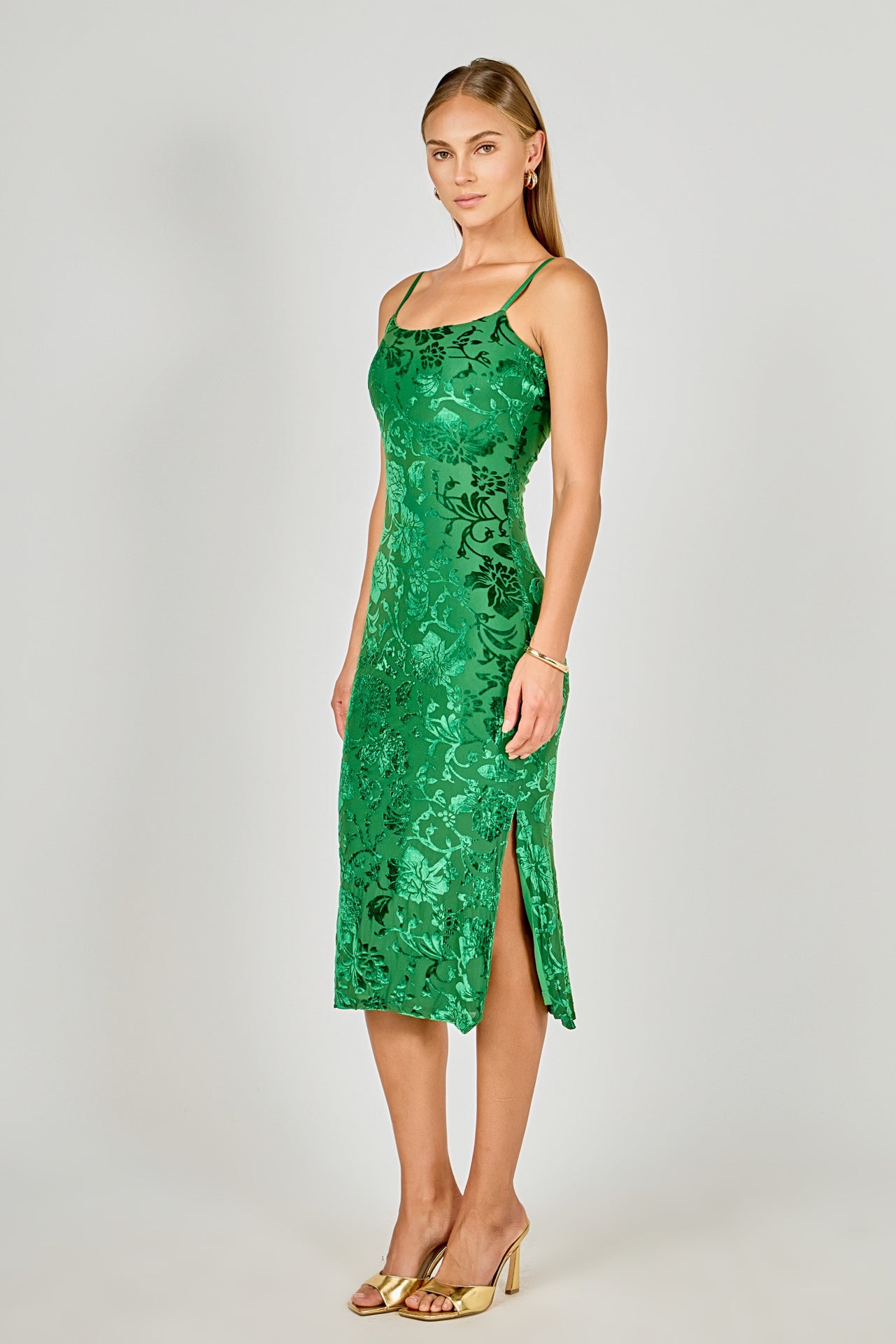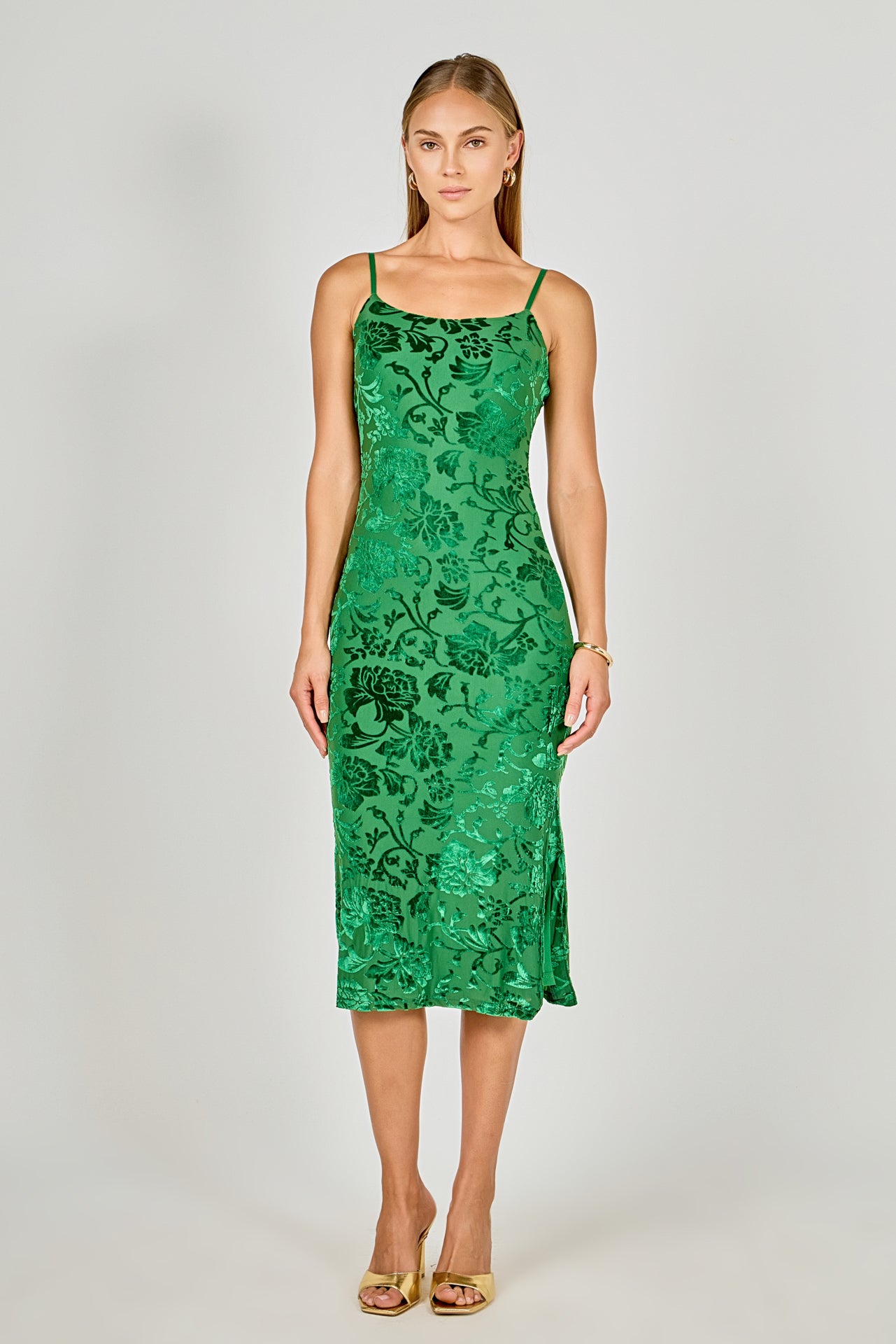 Our beautiful Print Velvet Slip Dress will make you stand out in any dress-up occasion. It's printed velvet fabric and maxi length provides a luxurious aesthetic while the subtle one side slit gives it an effortless charm. This fashion-forward dress is the perfect way to showcase your best features and make a bold statement. Styled to perfection and made from the highest quality velvet fabric you won't find anything else like it. Enjoy the world of style with our Print Velvet Slip Dress.