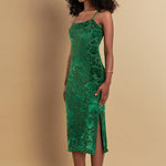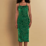 Our beautiful Print Velvet Slip Dress will make you stand out in any dress-up occasion. It's printed velvet fabric and maxi length provides a luxurious aesthetic while the subtle one side slit gives it an effortless charm. This fashion-forward dress is the perfect way to showcase your best features and make a bold statement. Styled to perfection and made from the highest quality velvet fabric you won't find anything else like it. Enjoy the world of style with our Print Velvet Slip Dress.