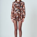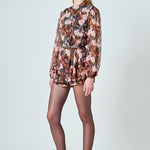 Upgrade your wardrobe with our stylish and versatile Printed Chiffon Mini Romper. Made from lightweight chiffon material, this mini jumpsuit features a flattering V-neckline, flowy sleeves, and a matching waist tie for a feminine touch. The eye-catching print adds a pop of color and personality to any look. Perfect for any occasion, from a casual day out to a night on the town. Pair with your favorite heels or sandals for an effortlessly chic ensemble. Add our Printed Chiffon Mini Romper to your collection and stand out from the crowd.