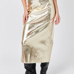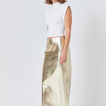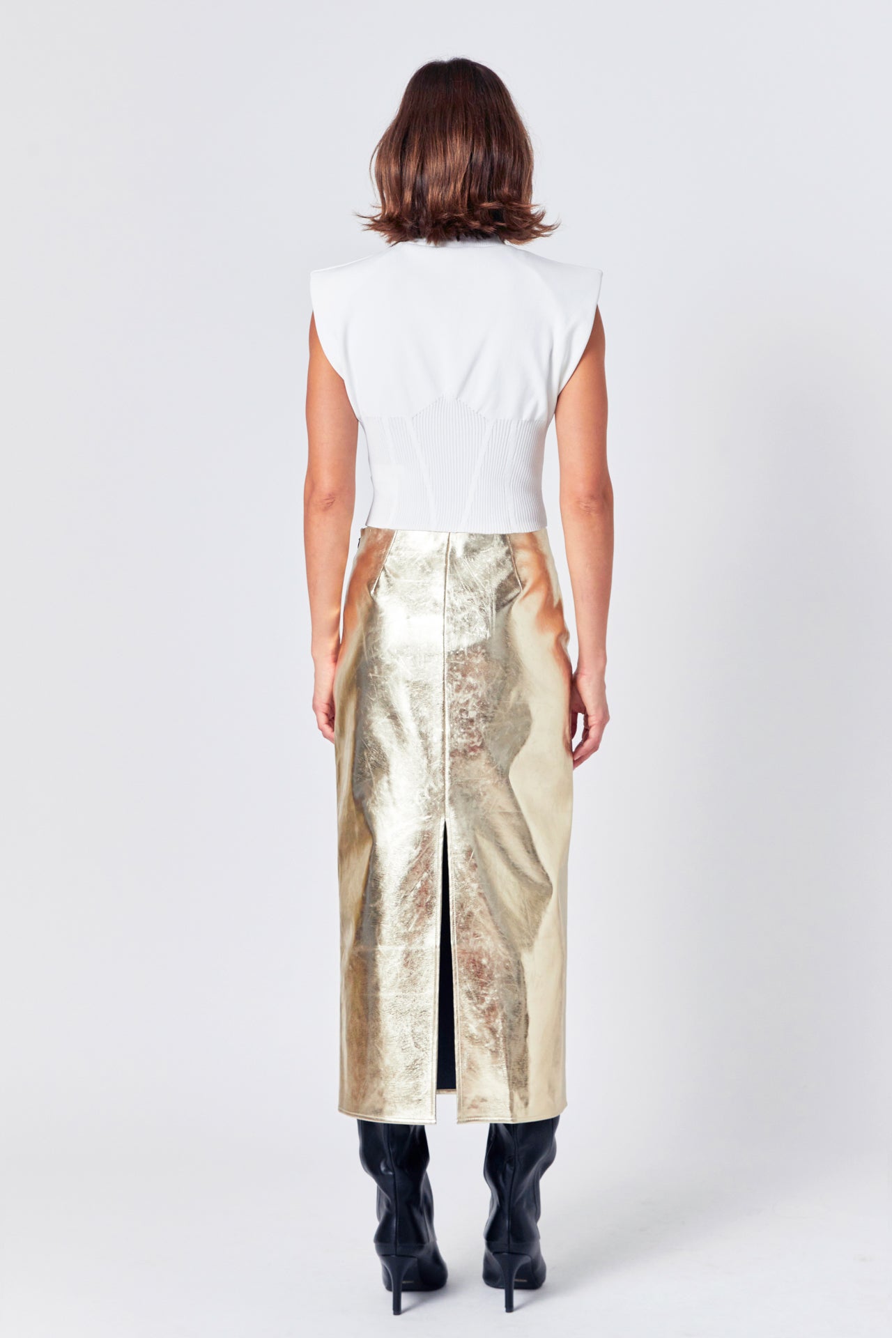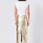 Introducing our Printed Foil Faux Leather Maxi Skirt, a must-have piece for any fashionista's wardrobe! The Maxi length adds effortless elegance while the Printed foil detailing adds a touch of glamour. Crafted from high-quality faux leather, this skirt exudes luxury and sophistication. The side zipper makes it easy to slip on and off, perfect for those busy days. Pair it with a crisp blouse or a fitted top for a chic ensemble. Don't miss out on this statement-making skirt that will turn heads wherever you go. Upgrade your style game now with our Printed Foil Faux Leather Maxi Skirt!