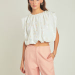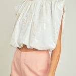Glam up your wardrobe with our Printed Foil Sleeveless Top! Featuring a glistening foil print, this top will make you stand out from the crowd. The round neck design adds a touch of sophistication while the cropped length keeps it trendy. Made with a sleeveless design, it's perfect for warmer days or layering with a jacket. Style it with high-waisted jeans or a skirt for a chic look. Don't miss out on this statement piece that will elevate any outfit. Dazzle in our Printed Foil Sleeveless Top, a must-have for your closet!