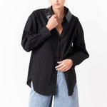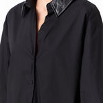 Our Pu Collared Oversize Shirt makes the perfect addition to any wardrobe! Cut with a slightly oversized fit this half-button-up shirt features a PU collar and structured seams for a timeless look. Crafted with premium materials this shirt is designed to last. Make a stunning wardrobe statement with our Pu Collared Oversize Shirt!