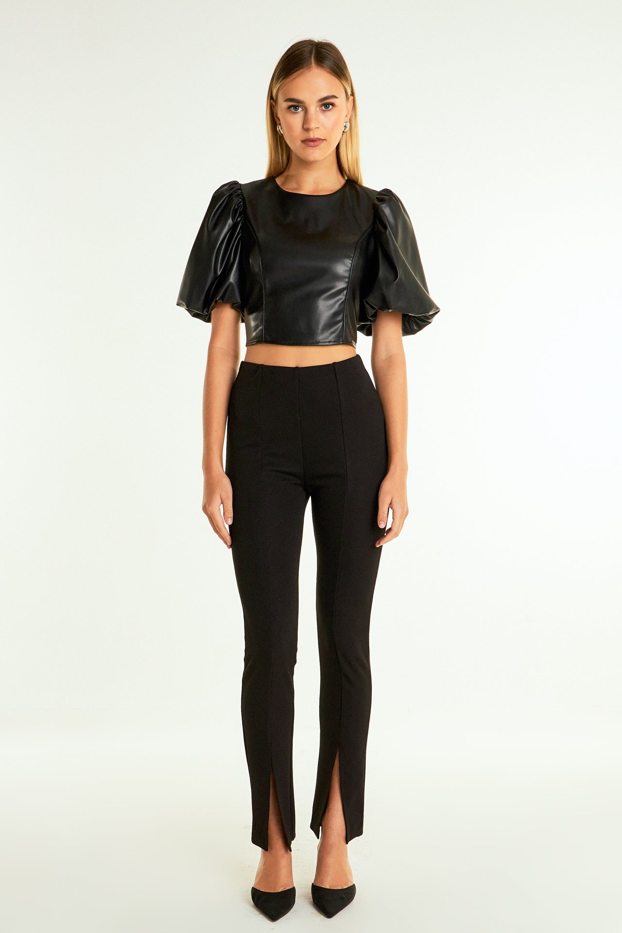 The perfect top for a night out or for dressing up a casual outfit, this PU Puff Sleeve Cropped Top will have you looking your best. The cropped length and puff sleeves are both trendy and chic, while the Pu fabric gives the top a bit of edge. Whether you pair it with jeans and heels or a skirt and flats, you're sure to turn heads when you step out in this stylish top.
