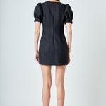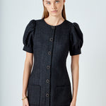 Tweed Puff Sleeve Mini Dress