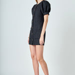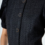 This little black dress is anything but basic. Elevate your everyday look with our Tweed Puff Sleeve Mini Dress from endless rose. With a touch of romance, this style is perfect for all occasions. The flattering fitted silhouette is complemented with puffy sleeves. It features two front pockets and beautiful gold-rimmed buttons down the front.