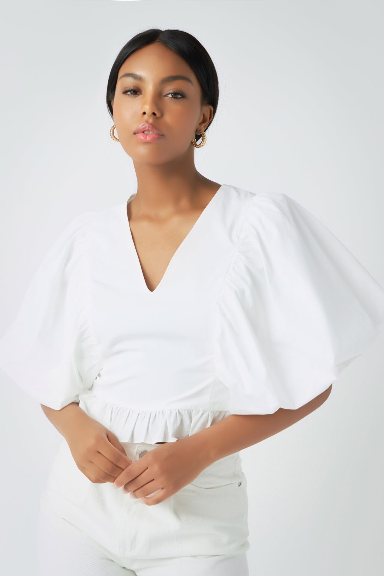 This top is perfect for a day out or a night on the town. The cropped length and 3/4 balloon sleeves give it a flirty and fun look, while the side zipper closure and ruffle hem detail add a touch of sophistication. The top is lined for a comfortable fit and is made of a lightweight fabric that is perfect for warmer days.