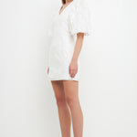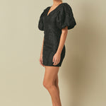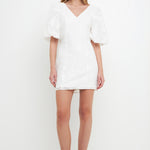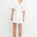 Floral Jacquard Puff Sleeve Mini Dress