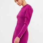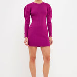 Elevate your style with this chic puff sleeve knit dress. With its elegant and timeless silhouette, this dress is a must-have for any fashion-forward woman. The fitted waist and flared skirt create a figure-flattering look, while the ribbed neckline ensures a comfortable fit. Perfect for any special occasion, this dress will have you looking and feeling your best.
