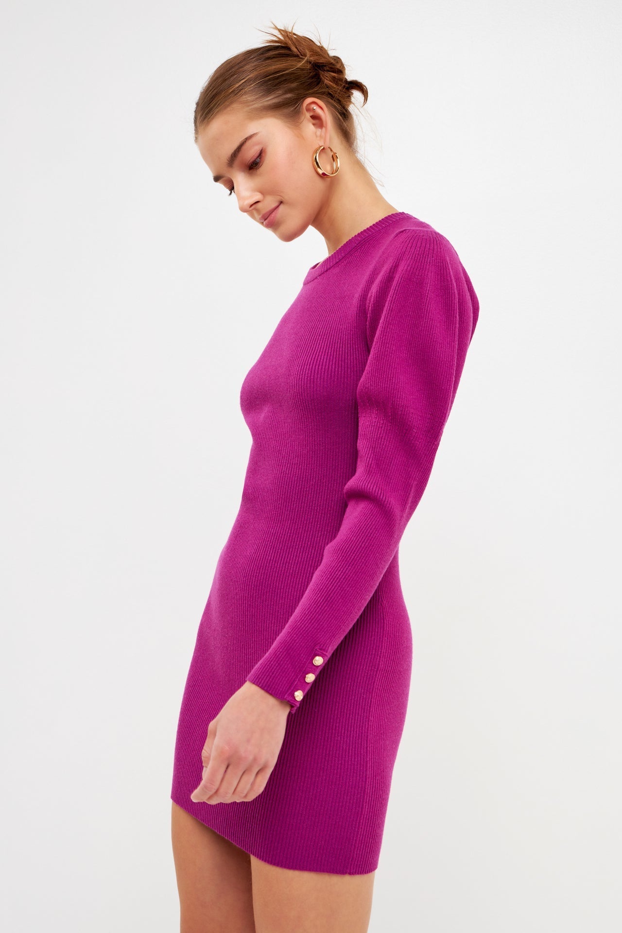 Elevate your style with this chic puff sleeve knit dress. With its elegant and timeless silhouette, this dress is a must-have for any fashion-forward woman. The fitted waist and flared skirt create a figure-flattering look, while the ribbed neckline ensures a comfortable fit. Perfect for any special occasion, this dress will have you looking and feeling your best.