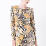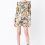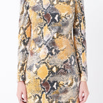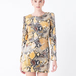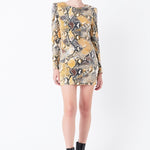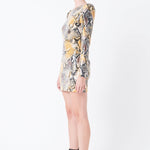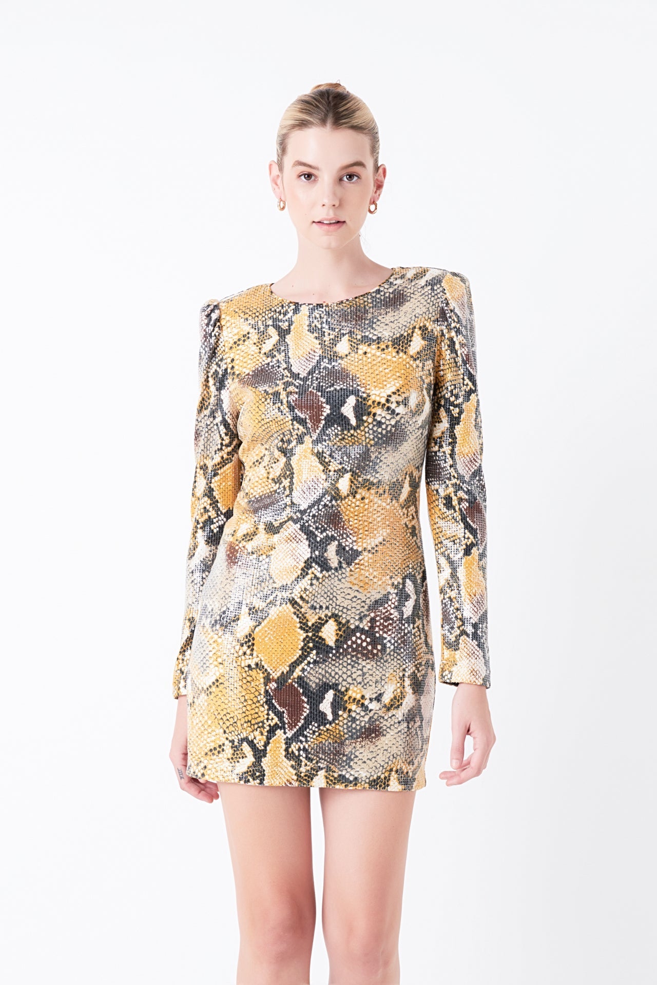 Take a walk on the wild side with this Snakeskin Sequin Mini Dress. This sequin mini dress features a snakeskin print beneath clear mini sequins, creating a multi-layered look that is sure to get compliments from all of your friends. Even though it's a fitted silhouette, this mini dress is made with stretchy fabric. So, it'll hug you in all of the right places AND you'll be extremely comfortable.