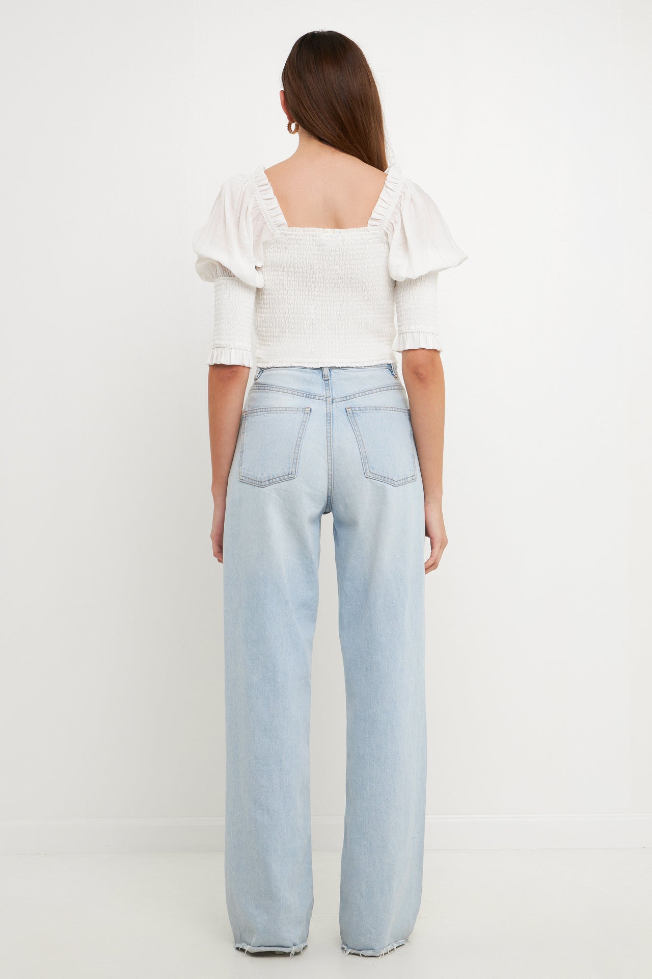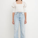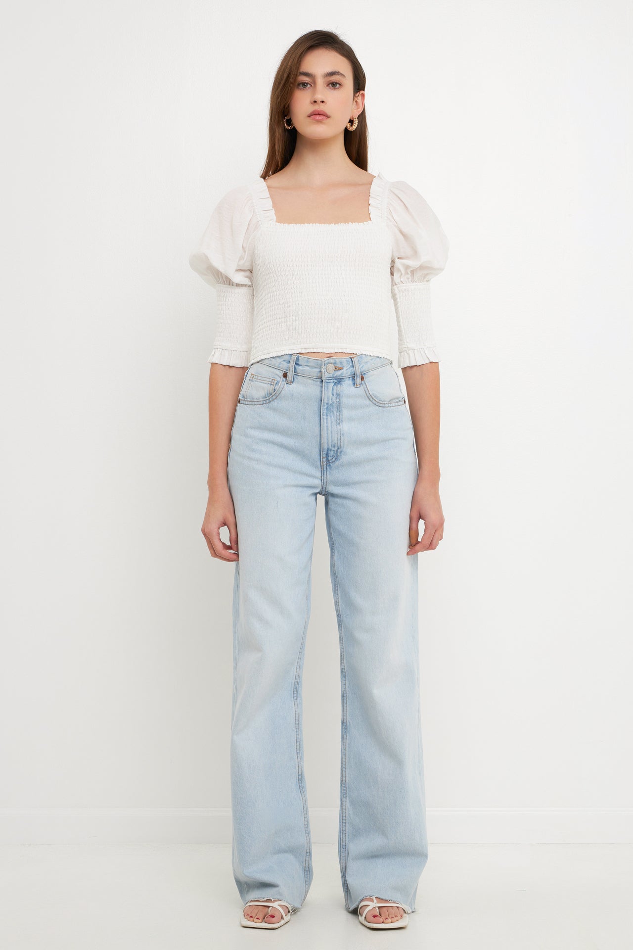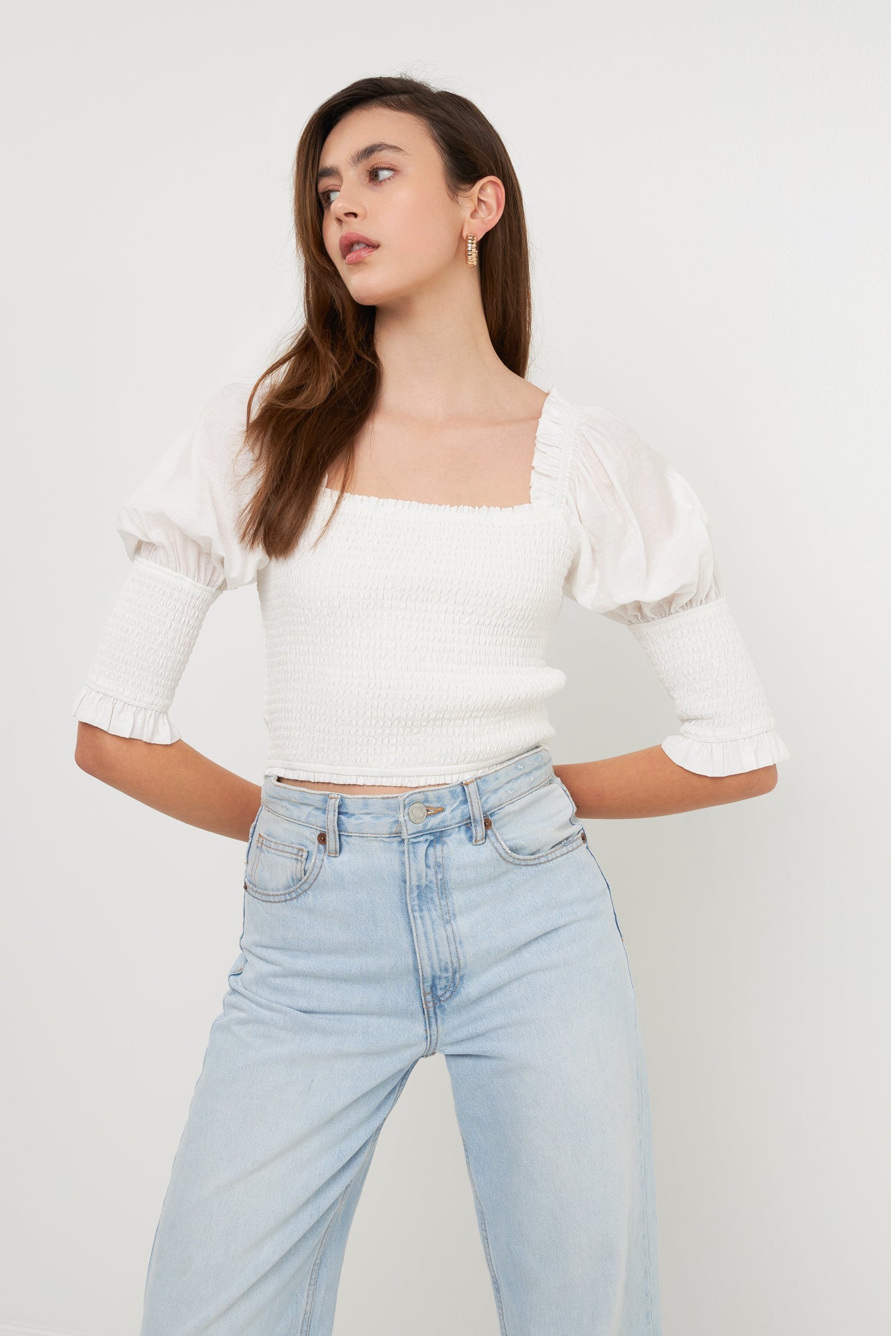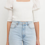 This Quarter Sleeve Smocked Puff Sleeve Top is the perfect addition to your wardrobe! It's fitted, cute, and white - perfect for any occasion. Plus, the puff sleeves give it that added touch of style. Dress it up or down and wear it any time of year!