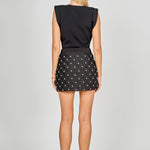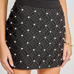 Add a sparkling touch to your wardrobe with our Rhinestone and Pearl Detail Mini Skirt. Adorned with intricate rhinestone and pearl embellishments, this skirt is designed to catch the light—and all the attention. The mini length offers a playful, flirty silhouette, making it perfect for nights out, parties, or special occasions. Pair it with heels or a chic top to complete a show-stopping look. Make every outfit shine with our Rhinestone and Pearl Detail Mini Skirt.