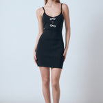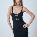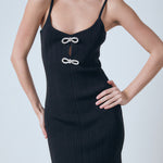 Make a sparkling statement with our Rhinestone Bow Knit Dress. This stunning dress features a sexy V neckline and delicate noodle straps for a flirty touch. The sleeveless design and mini length also make it perfect for warmer days. But what truly sets this dress apart is its rhinestone bow embellishment, adding that extra touch of glamour to any outfit. Perfect for a night out on the town or a special occasion, this dress will have you feeling confident and stylish. Embrace the sparkle and shop our Rhinestone Bow Knit Dress today!