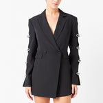 This stylish Rhinestone Romper is guaranteed to turn heads and make you feel like a star. The V-neck and lapel provides a glamorous style while the shimmering dollar pattern shoulder pads and inverse rompers draw the eye to your waist creating the perfect silhouette. Crafted from premium quality materials this piece will make you look amazing while helping you stand out in any crowd. Let the party start with this sparkling and unique design!