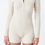 Our Ribbed Knit Romper is a stylish way to jump into spring with a timeless look. This romper features ribbed knit material a button down detail and a long sleeve look. It's perfect for any occasion and will make sure you look chic while staying comfortable. With its eye-catching design and unique button down detail this romper is perfect for anyone looking to stay stylish while showing off their own unique style. Shop our Ribbed Knit Romper today and make a fashion statement!