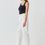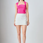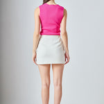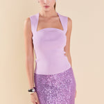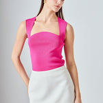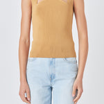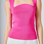 Add some comfort to your wardrobe with this ribbed knit sleeveless top. The fitted shape and arch neckline will bring an effortlessly stylish vibe to the look while the ribbed knit fabric is soft and comfortable against the skin. Wear it alone or layer it up with a denim jacket. This top is perfect for warm days and crisp nights alike.