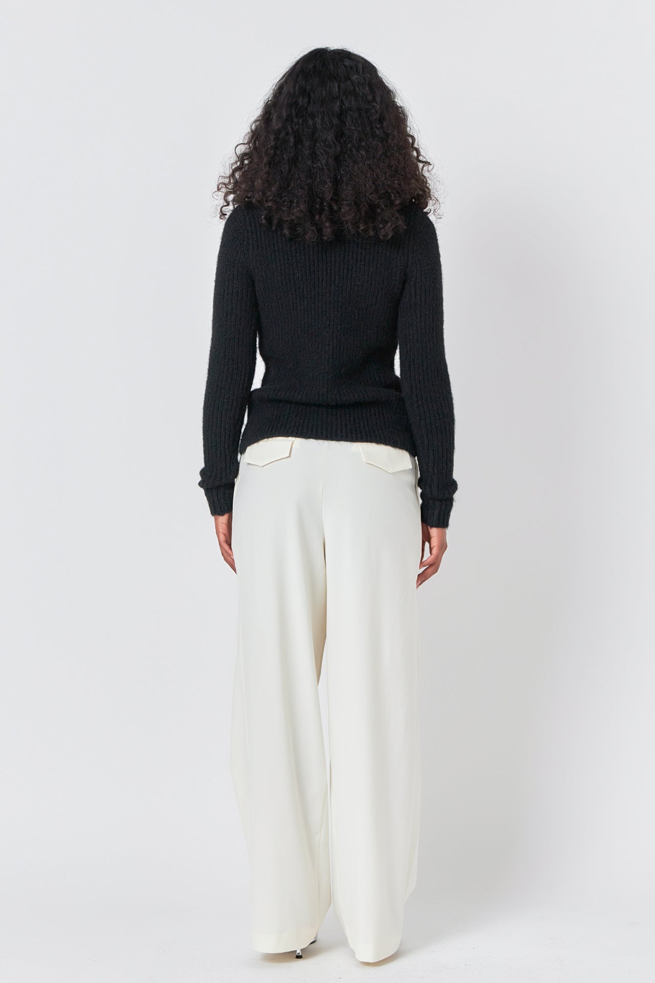 Upgrade your knitwear collection with our Ribbed Long Sleeve Top. Made with a soft and comfortable knit material, this top is perfect for those cold weather days. The inner sleeve rib knitdown not only adds a touch of style, but also helps keep you warm. With a relaxed fit and round neckline, this top is versatile for any occasion. Pair it with some jeans for a casual look or dress it up with a skirt for a more sophisticated vibe. Don't miss out on this must-have piece that combines style and comfort. Shop now and elevate your sweater game!