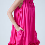 Take your style to a whole new level with this Rosette Mini Dress. Crafted from silky lightweight fabric this mini dress showcases a sleeveless silhouette with a flared A-line design. The intricate rosette detail along the neckline adds a feminine touch to this classic piece. Complete any look effortlessly with this beautiful dress. Get it today and stand out from the crowd!