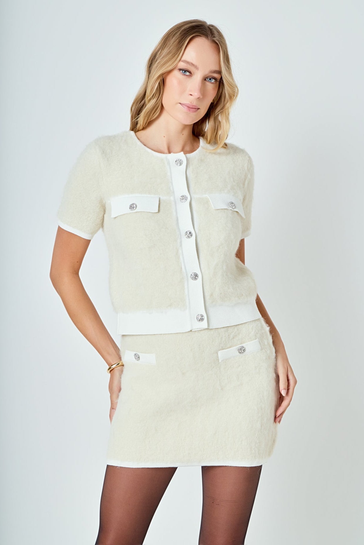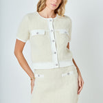 Elevate your sweater collection with our Round Neck Short Sleeve Cardigan! This versatile piece features a classic round neckline and chic short sleeves, perfect for layering or wearing on its own. The front button closure and ribbed detailing add a touch of elegance, while the jewel buttons add a pop of sparkle. Made from a high-quality fabric, this cardigan is comfortable and easy to care for - just hand wash with cold water and lay flat to dry. Available in a stylish French color, this cardigan will become a go-to favorite in your wardrobe.