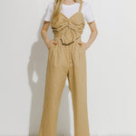 Upgrade your jumpsuit game with our Ruched Detail Jumpsuit. This stunning piece features delicate shoulder straps for a feminine touch. The ruched bodice adds a touch of elegance and the pleated pants create a flattering silhouette. Complete with a zipper closure at the back with hook and eye, this jumpsuit is both stylish and functional. Perfect for any occasion, be it a night out with friends or a formal event. Elevate your wardrobe with this must-have piece. Search no further, our Ruched Detail Jumpsuit has got you covered.
