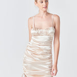 Show off your curves in our Satin Ruched Mini Dress from Grey Lab. The luxurious stretchy satin fabric hugs your body in all the right places, and the adjustable side ruching ensures the perfect figure-flattering fit. Wherever you go, this mini dress is sure to turn heads. On chilly nights, style it with a faux leather jacket.