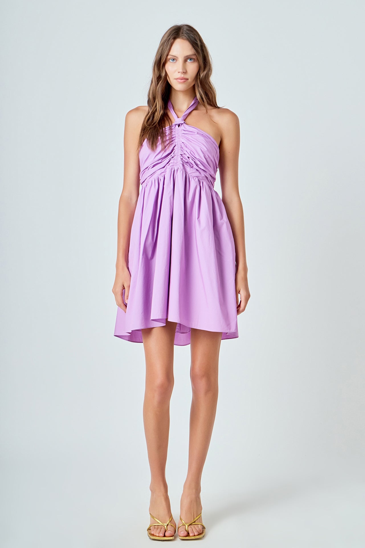 Ruched Halter Neck Flounce Dress