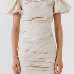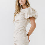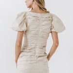 Make a statement with this breathtaking Ruched Puff Sleeve Dress. Featuring a ruched detail, short puff sleeves and mini length, this dress will turn heads wherever you go. Perfect for a night out, this dress is hand wash cold and offers you long lasting quality. Stand out above the rest in this unique ruched puff sleeve dress, sure to drive sales.