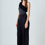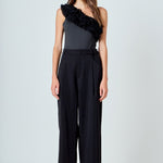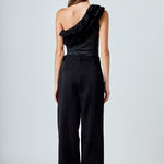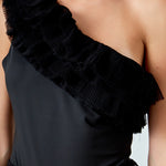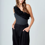Take your style to the next level with this ruffled asymmetrical bodysuit. No need to worry about tucking or readjusting. This sleek fitted bodice has a striking asymmetrical shoulder and a delicate ruffled neckline for a touch of sophistication. It's the perfect way to add an unexpected twist to your wardrobe morning noon or night!
