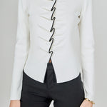 Meet our Ruffle Draped Knit Top, a versatile addition to your wardrobe. Made from soft knit fabric, it features a flattering draped silhouette and delicate ruffle details for a feminine touch. Long sleeves provide comfort and warmth, making it perfect for dressing up or down. Elevate your knitwear collection with this stylish, must-have top.