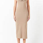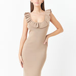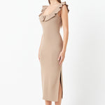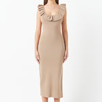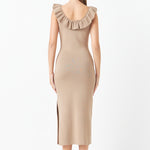 Ruffle Neckline Midi Slit Dress