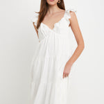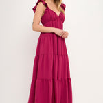 This Ruffle Sleeve Maxi Dress is sure to turn heads. With a V neckline, ruffled sleeves and maxi dress length, this dress is both flattering and stylish. The invisible zipper with hook and eye at side ensures a perfect fit, while the ruffled sleeves add a touch of elegance.
