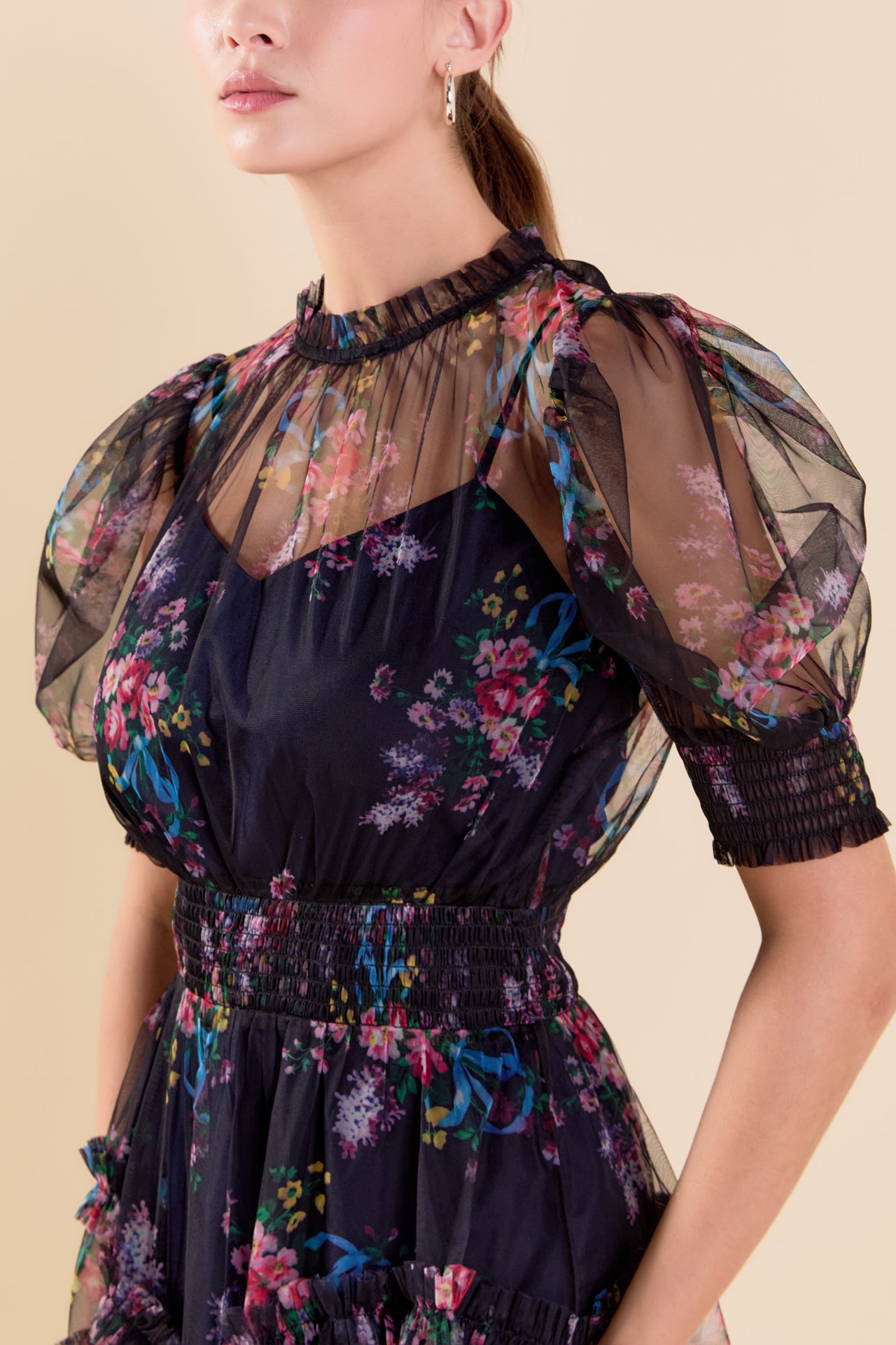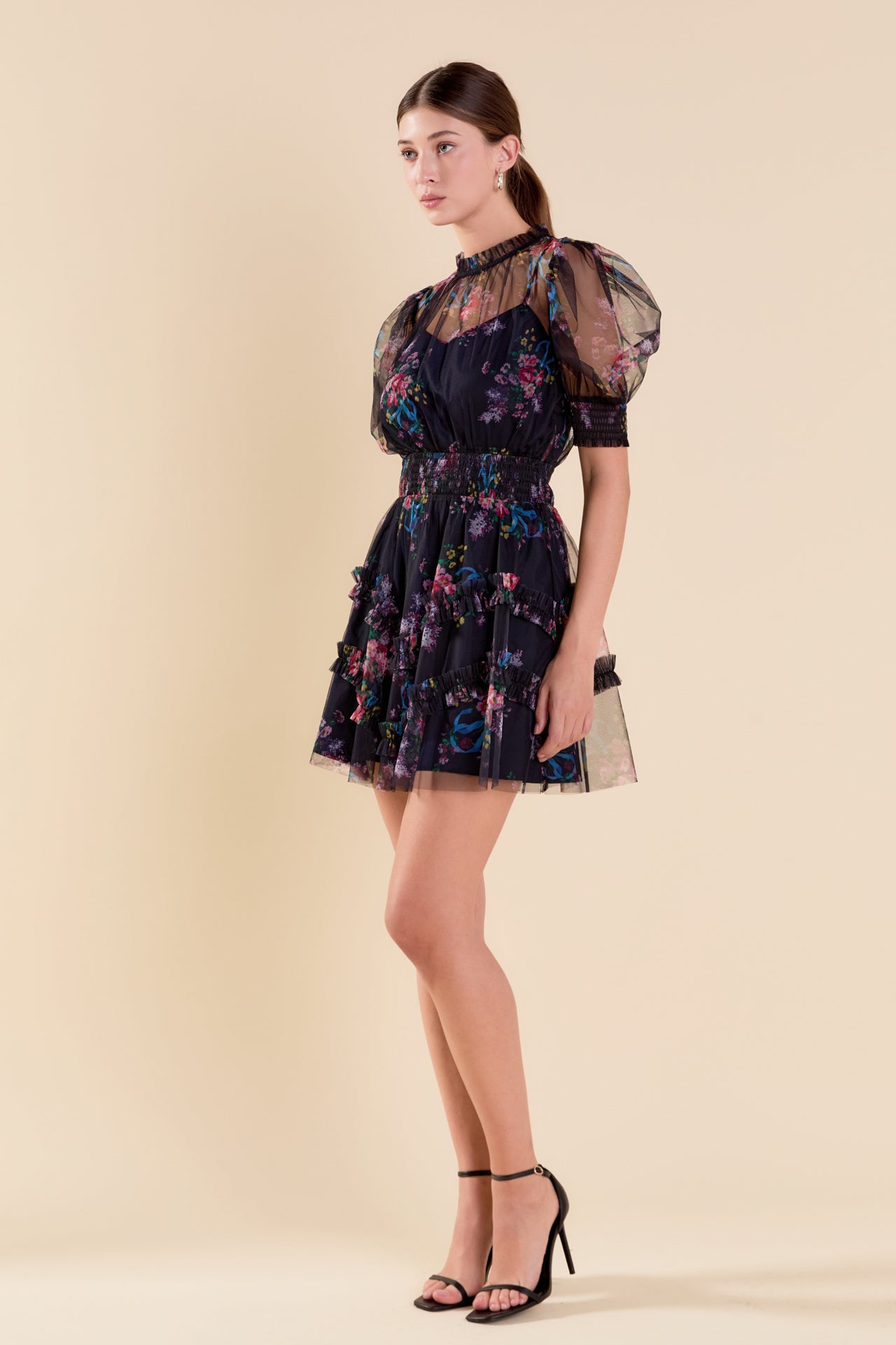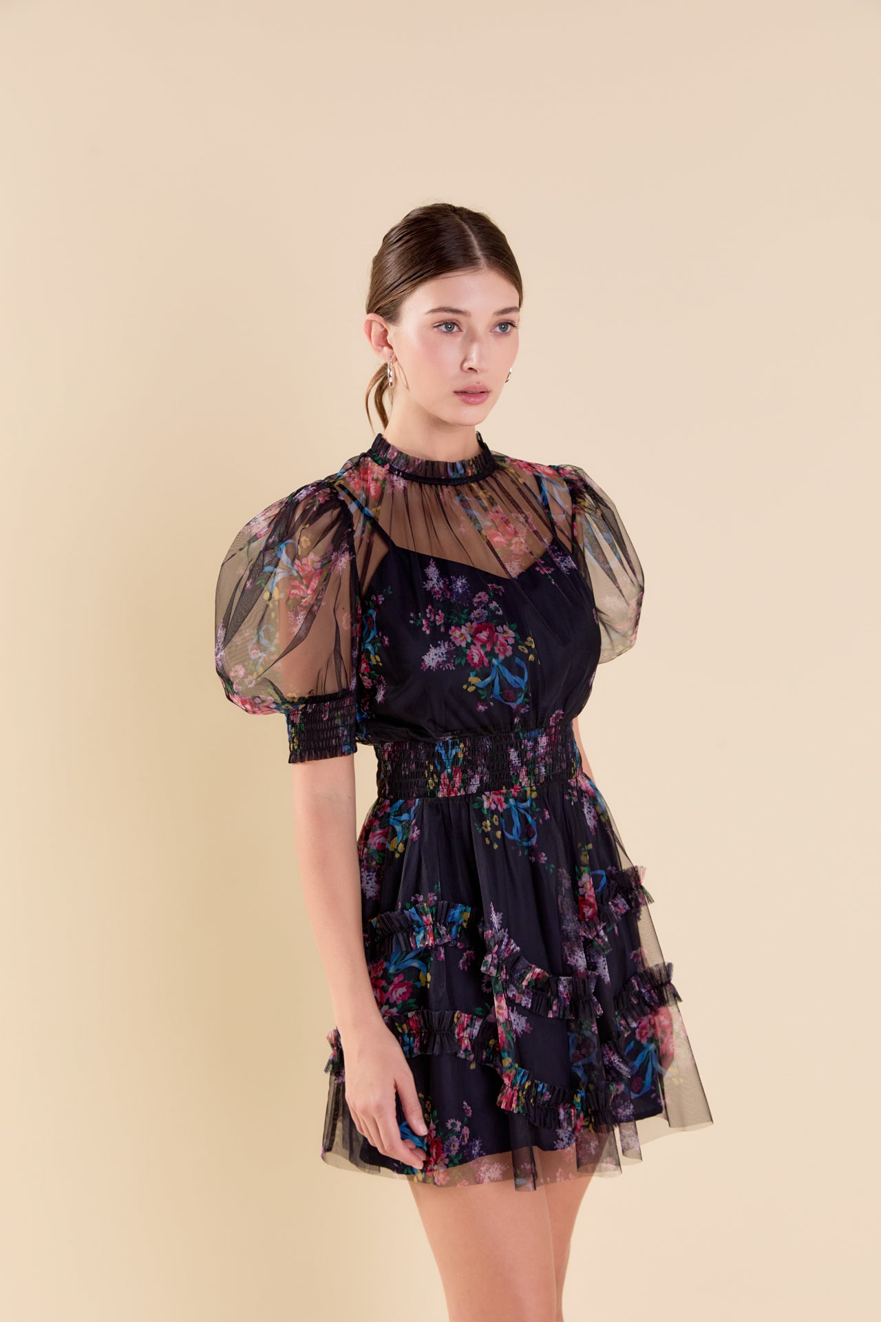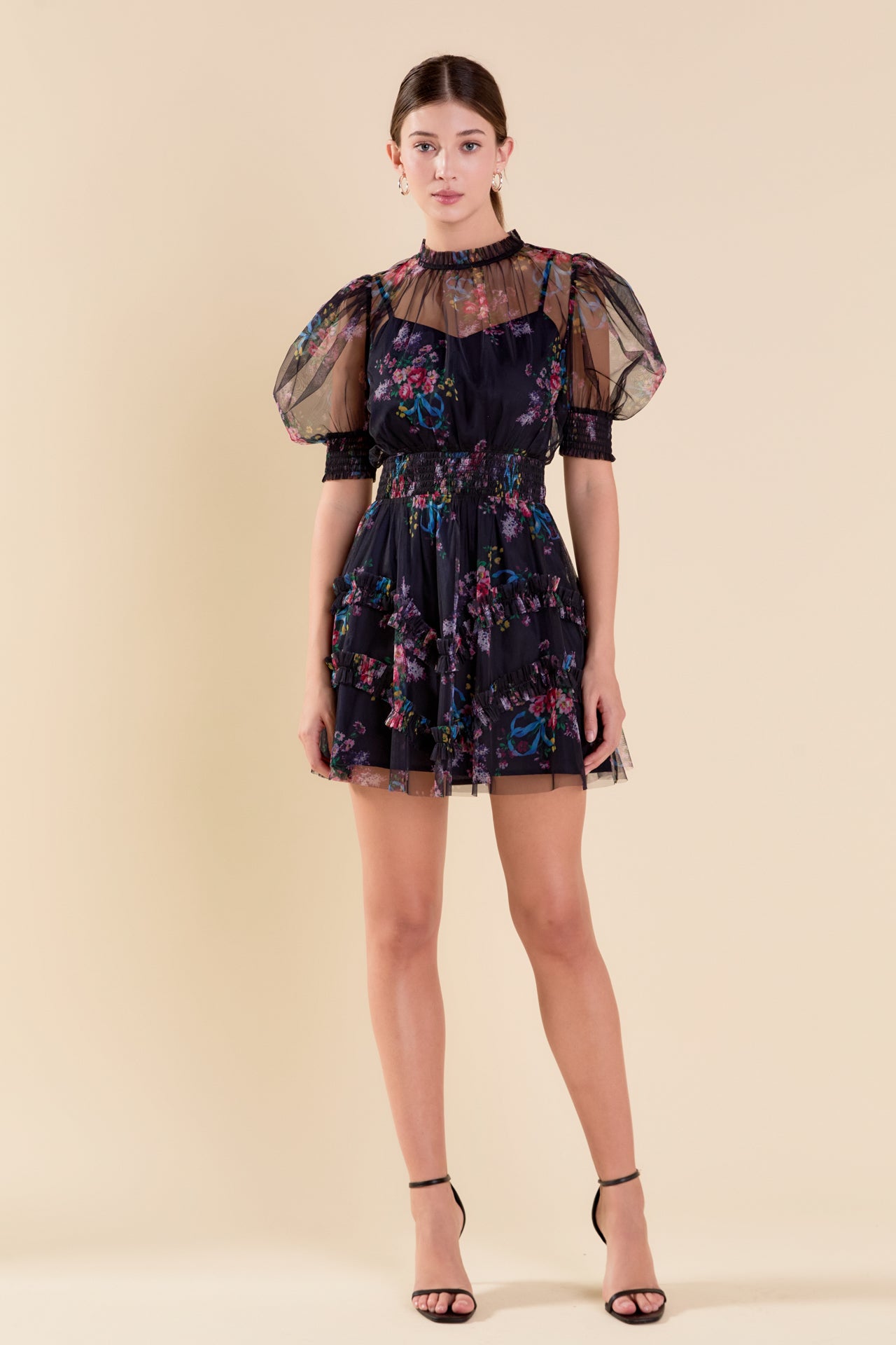 Make a statement in our Ruffled Mesh Mini Dress. The mini length showcases your legs while the blouson short sleeves add a playful touch. The ruffled details add femininity and movement to this chic piece perfect for any occasion. The mock neck adds a sophisticated touch while highlighting your neckline. Made with high-quality mesh fabric this dress is both comfortable and stylish. A must-have for any fashion-forward wardrobe. Dress it up with heels or keep it casual with sneakers. Stand out and turn heads in this unique and versatile dress.