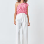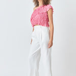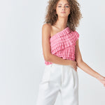 Spice up your wardrobe with this Endless Rose ruffled one-shoulder top. With a pleated neckline and a single ruffled sleeve, it gives the perfect balance of glamor and subtle flair. From day to night, you can take it from the office to the dance floor in style. For a feminine look with just enough drama, add this top to your wardrobe today.