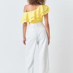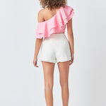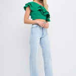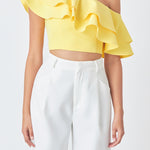 Add some drama to your outfit with this Ruffled One Shoulder Top. The one shouldered silhouette is unique and eye-catching, while the ruffle detail adds a touch of femininity. The crop length is perfect for showing off your best assets, while the invisible size zipper ensures a perfect fit. The top is lined for your comfort.