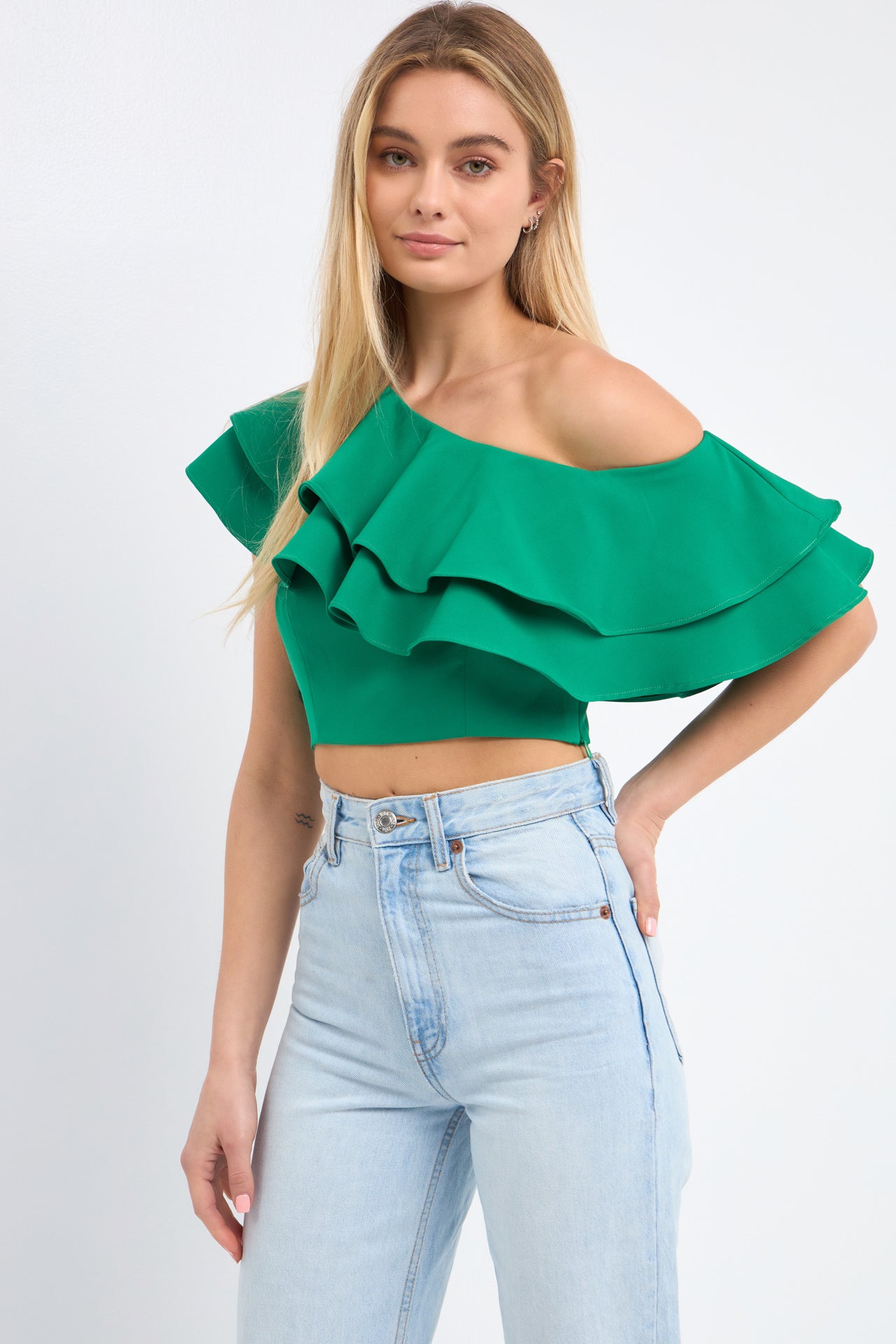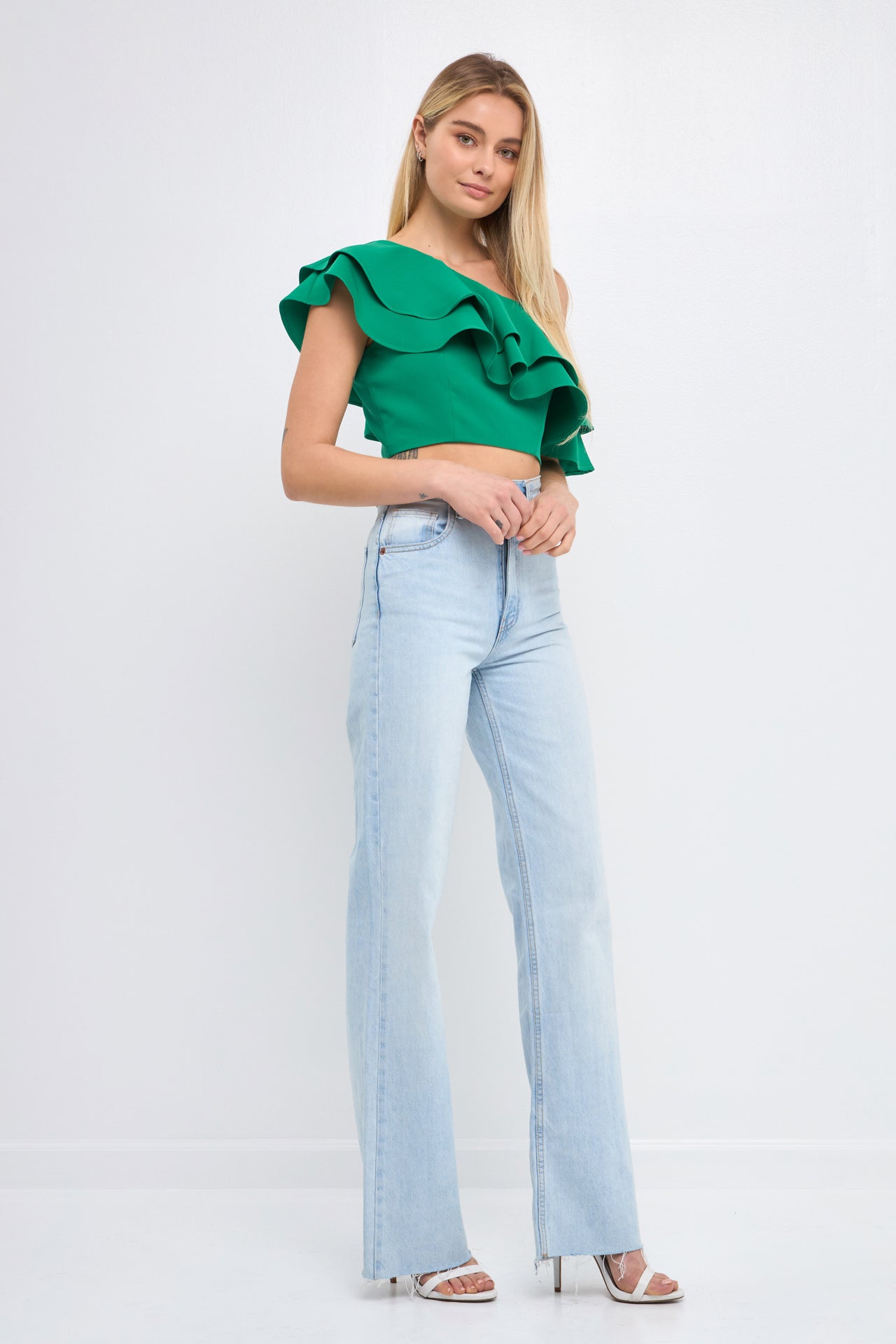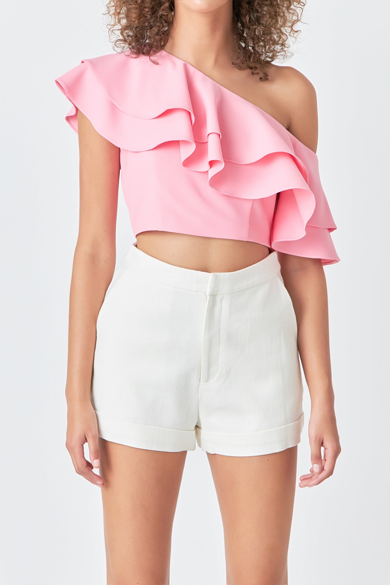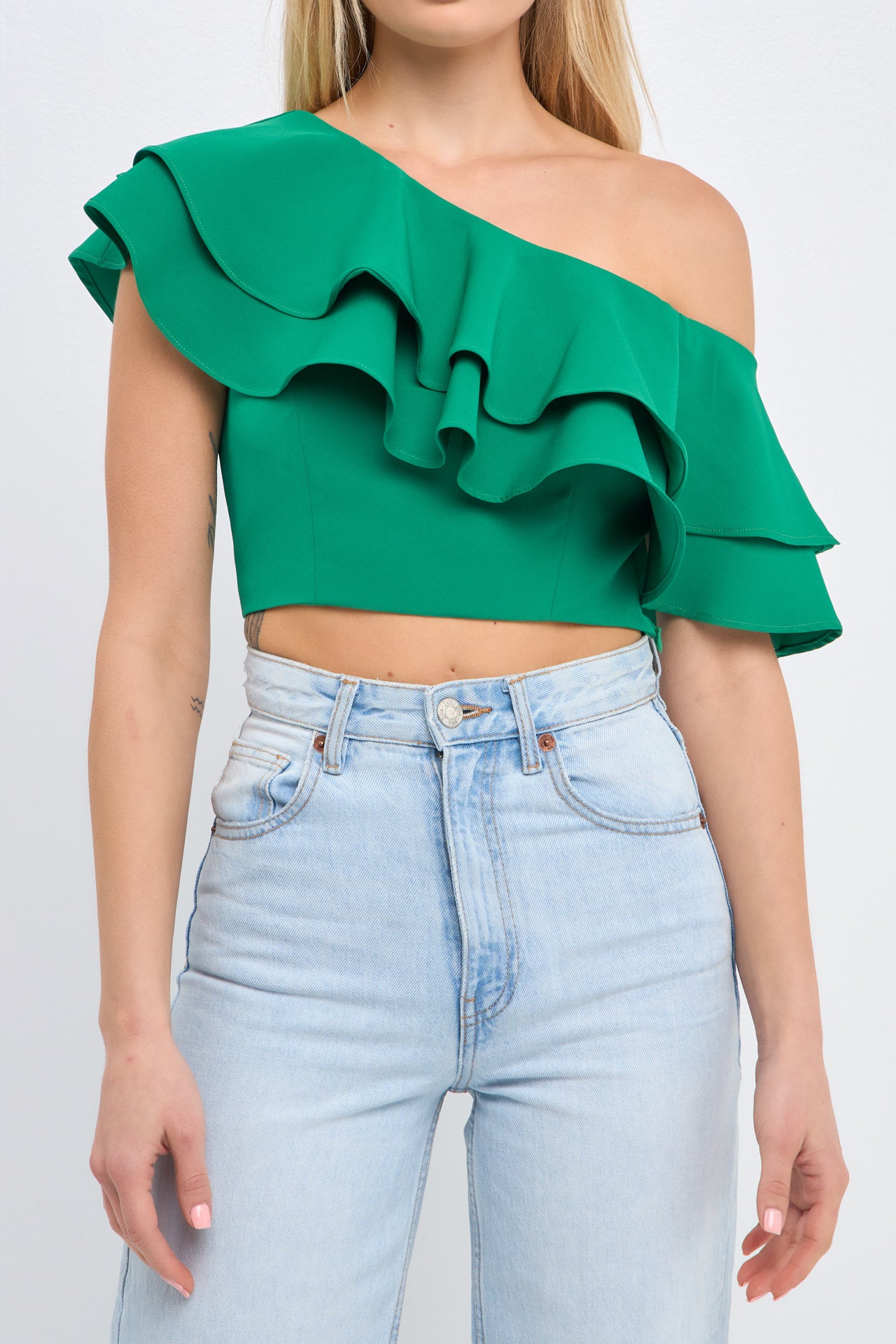 Add some drama to your outfit with this Ruffled One Shoulder Top. The one shouldered silhouette is unique and eye-catching, while the ruffle detail adds a touch of femininity. The crop length is perfect for showing off your best assets, while the invisible size zipper ensures a perfect fit. The top is lined for your comfort.