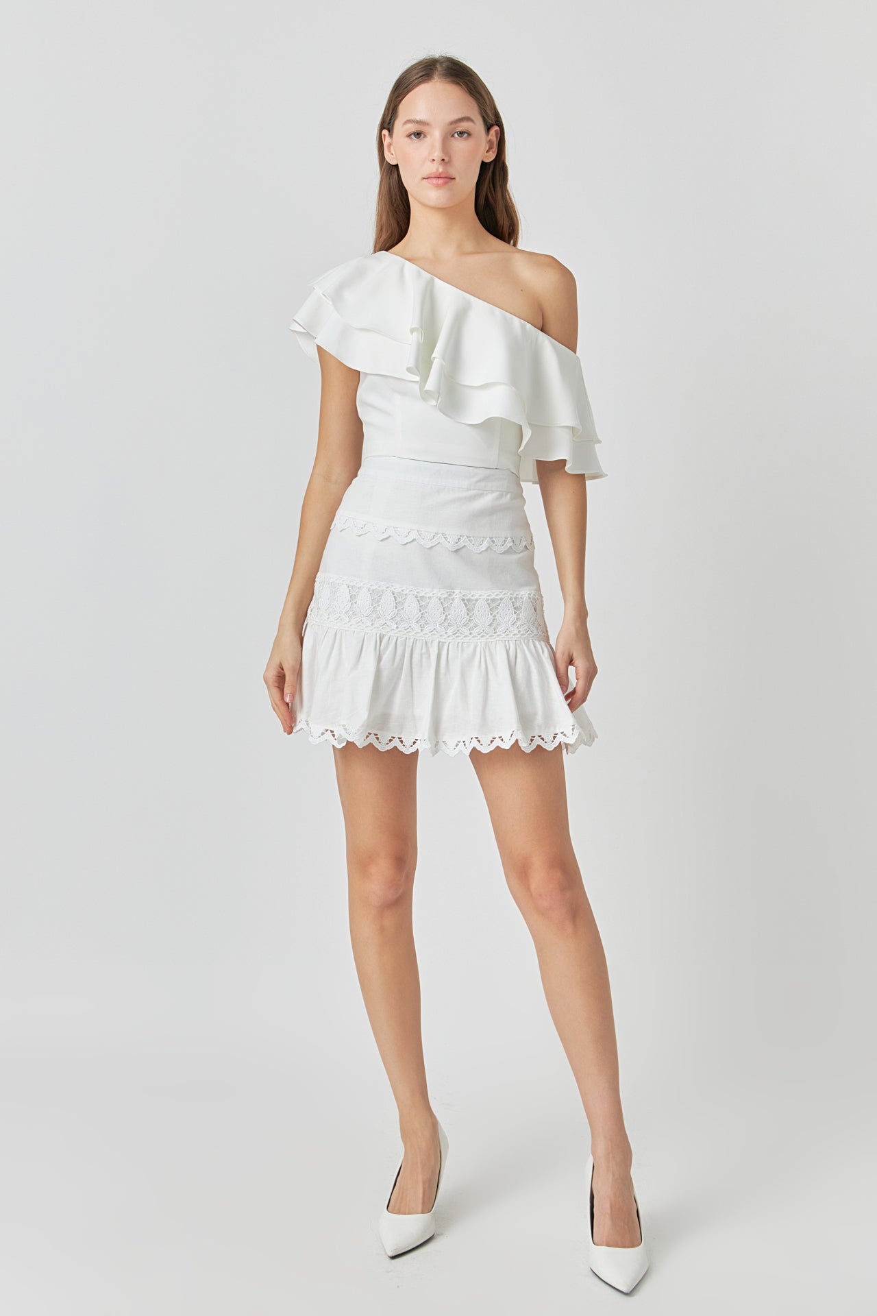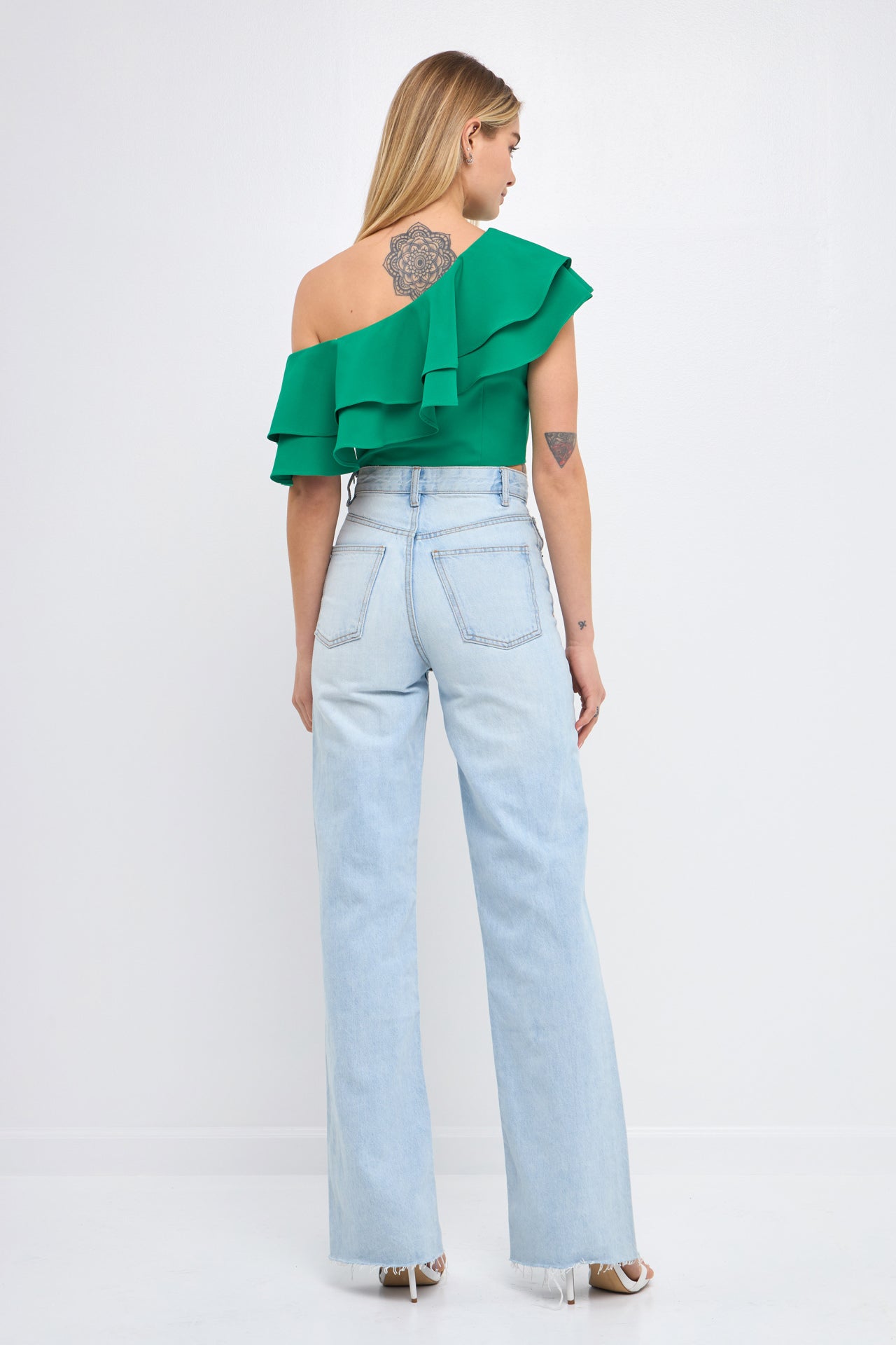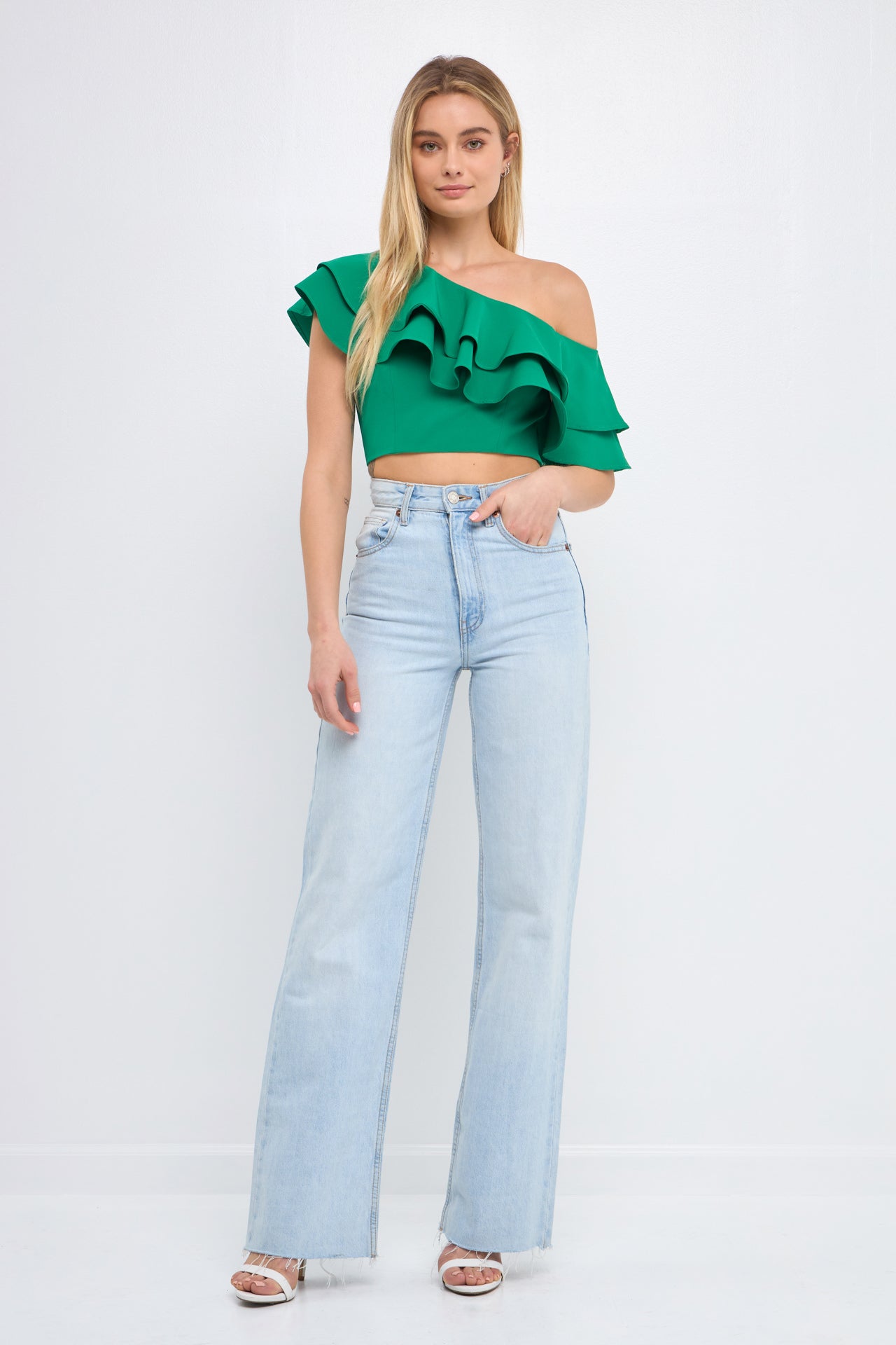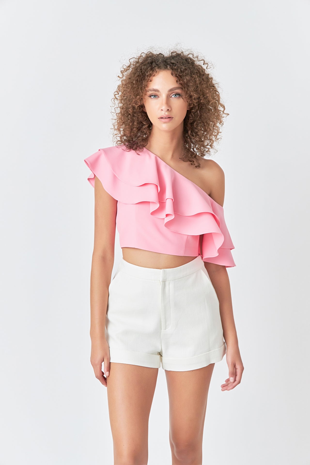 Add some drama to your outfit with this Ruffled One Shoulder Top. The one shouldered silhouette is unique and eye-catching, while the ruffle detail adds a touch of femininity. The crop length is perfect for showing off your best assets, while the invisible size zipper ensures a perfect fit. The top is lined for your comfort.