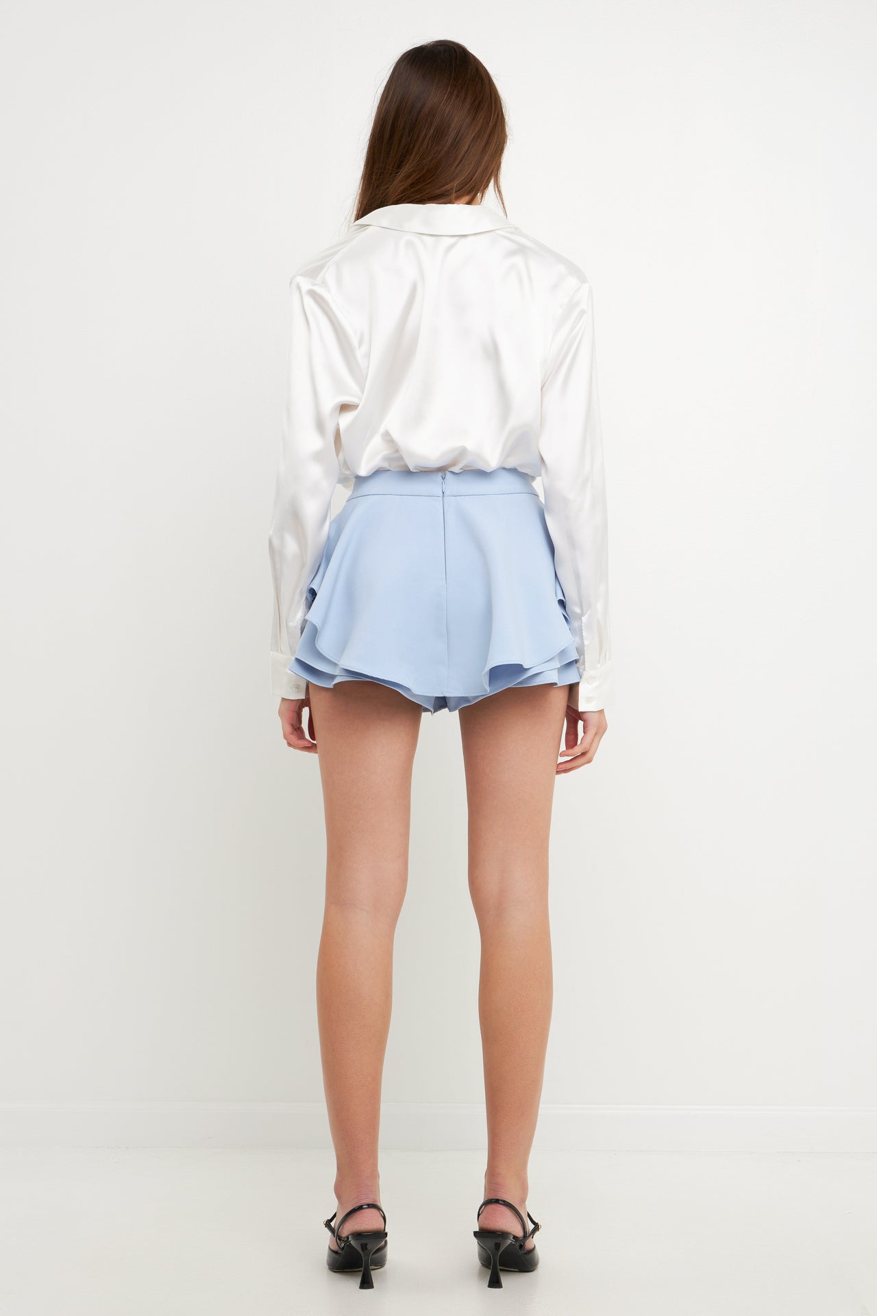 The Ruffled Skort is a must-have for any fashion, savvy individual. This versatile piece can be dressed up or down, making it perfect for any occasion. The flattering flare ruffle and back zipper make this skort stand out from the crowd, while the waist band ensures a comfortable fit. So, why wait? Add the Ruffled Skort to your wardrobe today!