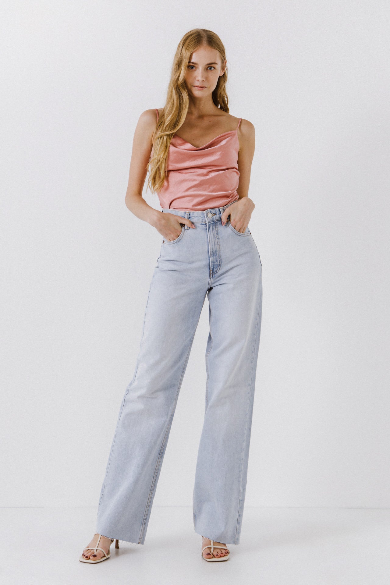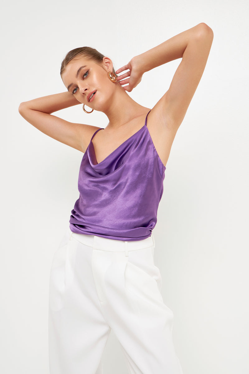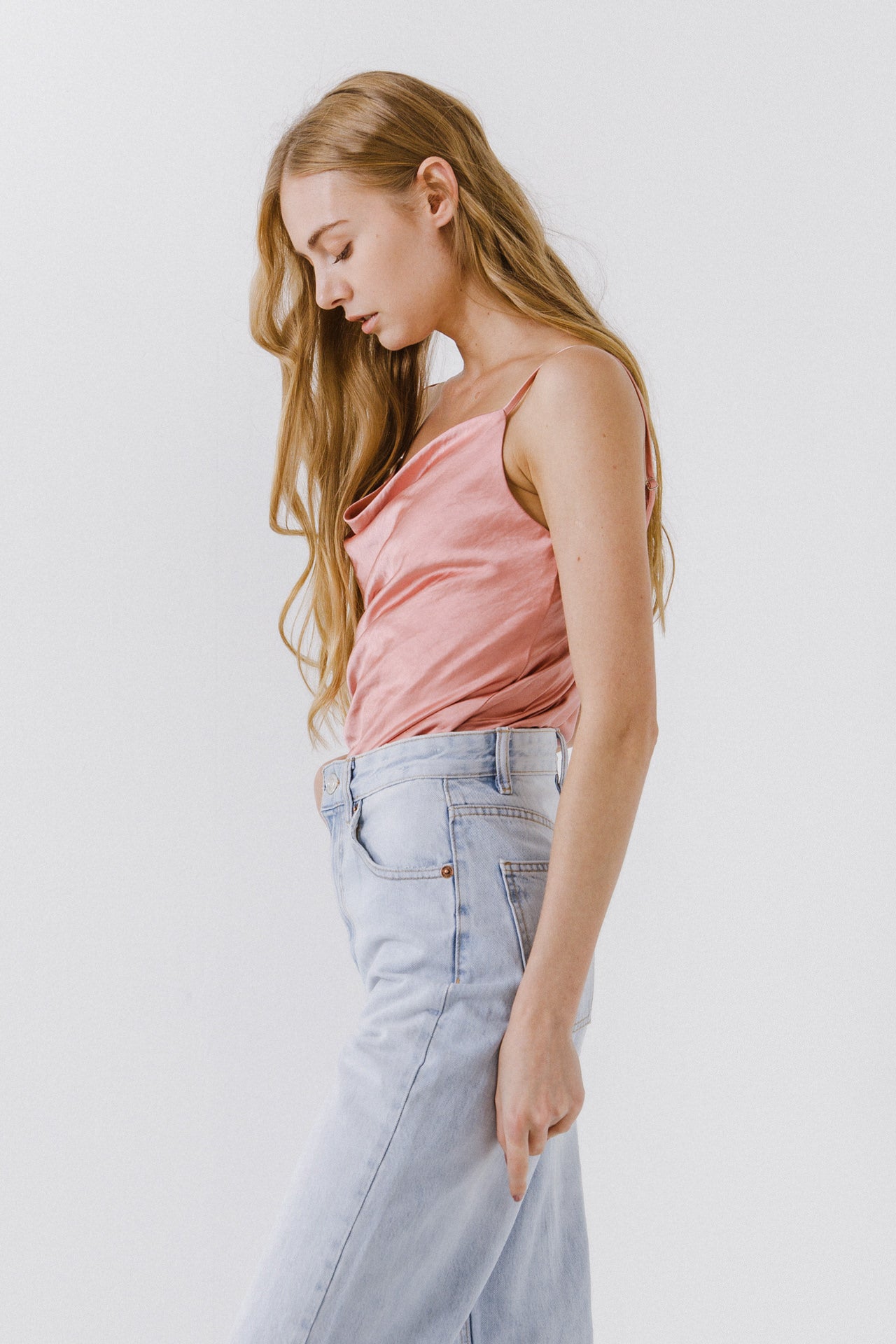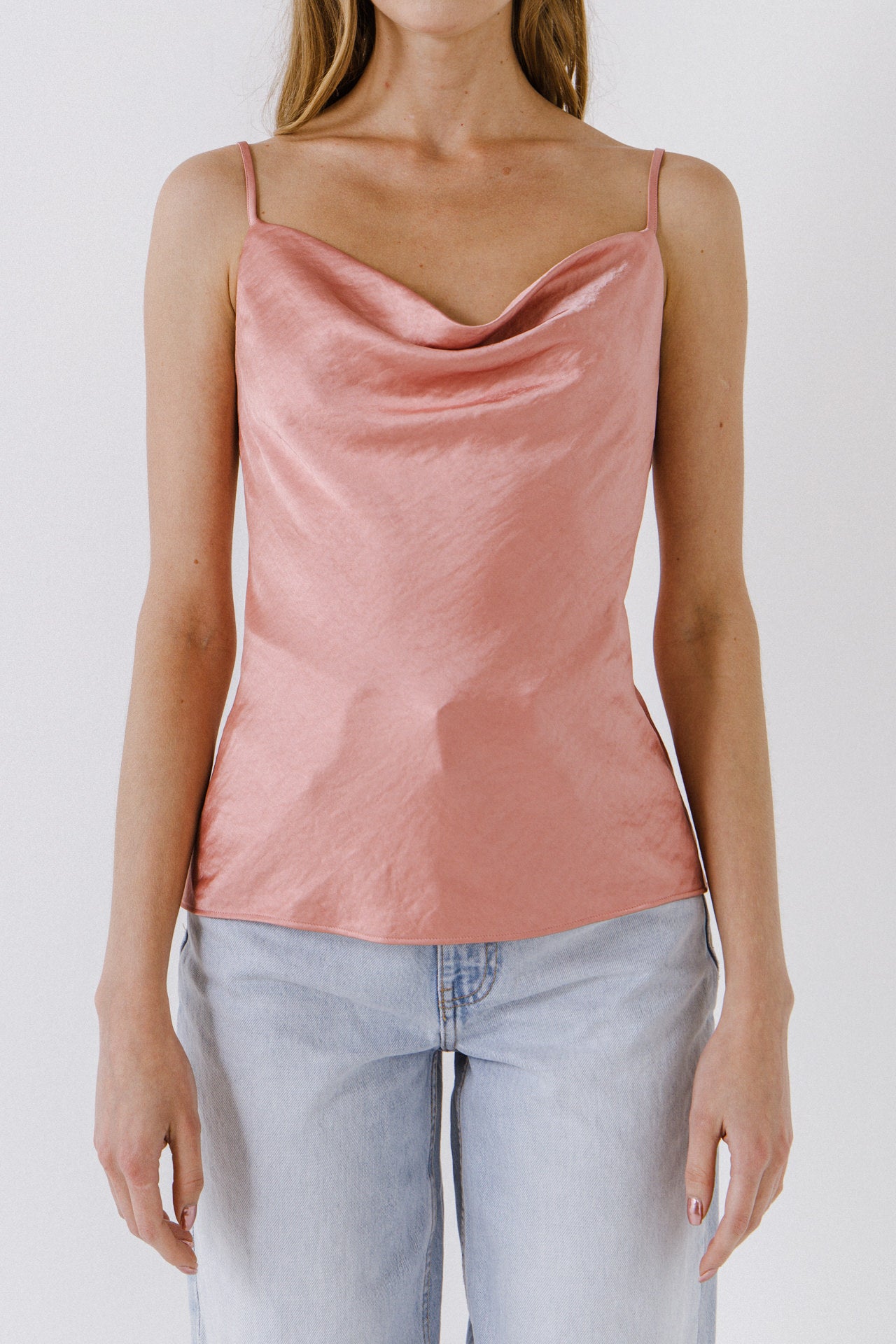 Elevate your everyday style with this chic cowl neck top. Made from satin fabric, this cami top has a luxurious feel that will elevate any outfit. With a cowl neckline and spaghetti straps, it's perfect for summer days or evenings out. Pair it with jeans or skirts for an effortless look that will make you feel beautiful.