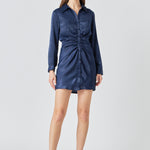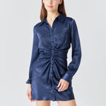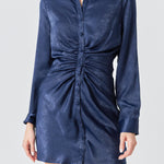 Elegance has never been so easy with the Satin Front Cinched Mini. This beautiful mini dress comes in luxurious satin material, cinched at the waist with ruched detail. The button-up detail and collar add a touch of sophistication, while the long sleeves make it perfect for a more formal occasion. Whether you're attending a wedding or a work function, you're sure to turn heads in this gorgeous mini dress.