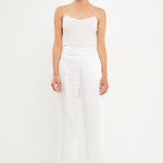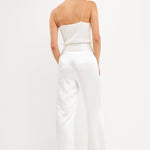 These sleek and stylish satin trousers are the perfect way to make a statement. The tuxedo pleated high waistband is both stylish and flattering, while the wide leg trousers give you a look that is both sophisticated and stylish. The side pockets and side zipper add a touch of utility, while the lining ensures a smooth and comfortable fit.