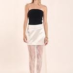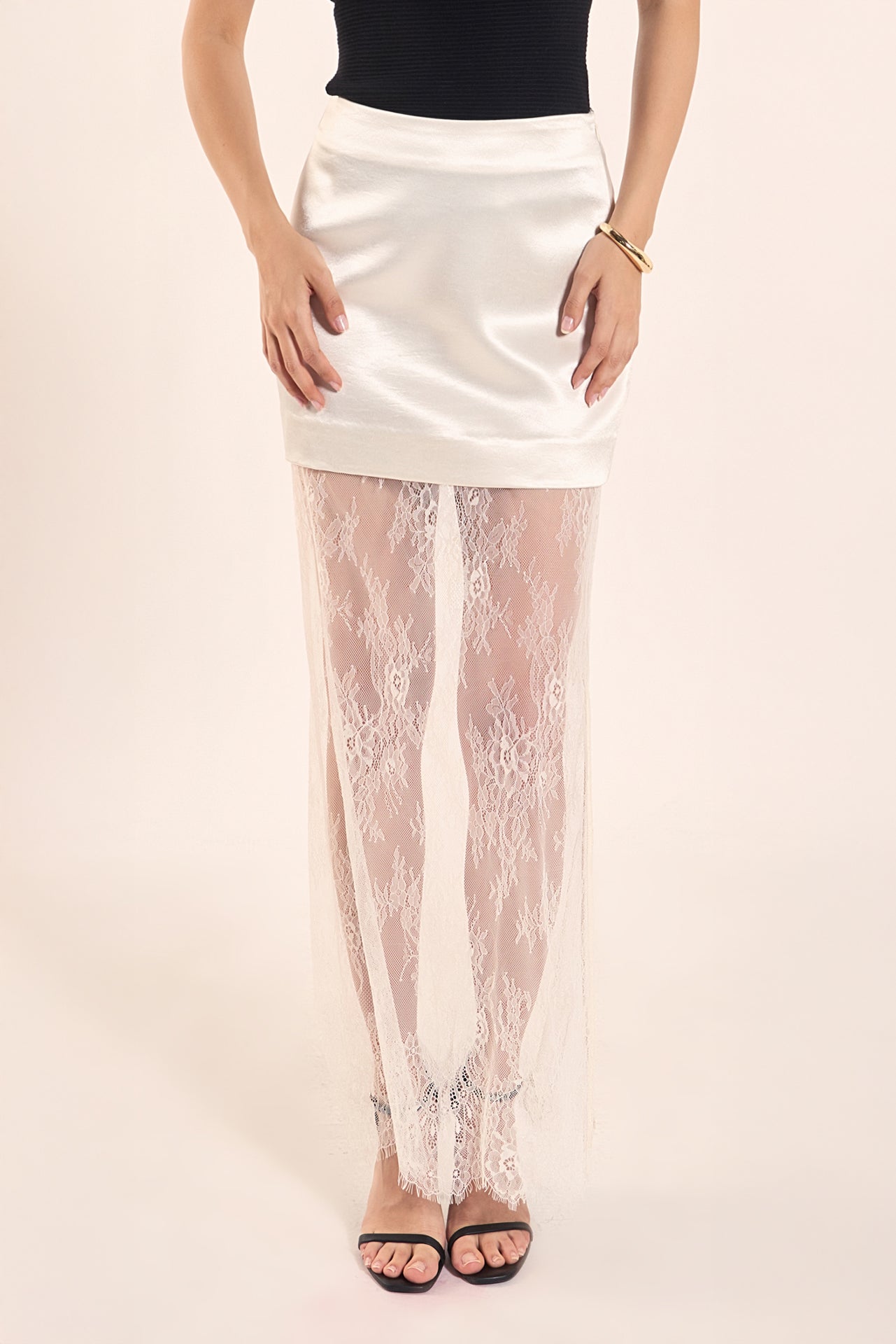 Indulge in timeless elegance with our Satin Velvet Maxi Skirt, a statement piece designed to captivate. Crafted from the richest satin and accented with delicate lace, this skirt blends soft femininity with modern sophistication. The mixed-media design creates depth and texture, while the flowing maxi silhouette moves gracefully with every step. Versatile enough to dress up with heels and a blouse or style down with a cozy knit, it is a piece that transitions effortlessly from day to night. This skirt is a true wardrobe essential for anyone looking to bring a touch of drama and refinement to their style.
