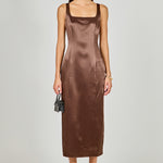 Satin Velvet Scoop Neck Midi Dress