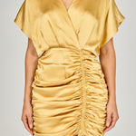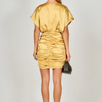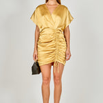 The epitome of effortless elegance. With its elegant simplicity, this mini dress is the perfect way to show off your feminine side. The shirred skirt and satin fabric create a look that's soft, flattering, and undeniably stylish. Whether you're dressing up for a party or just accenting your everyday style, this dress is a must-have for elegant women everywhere.
