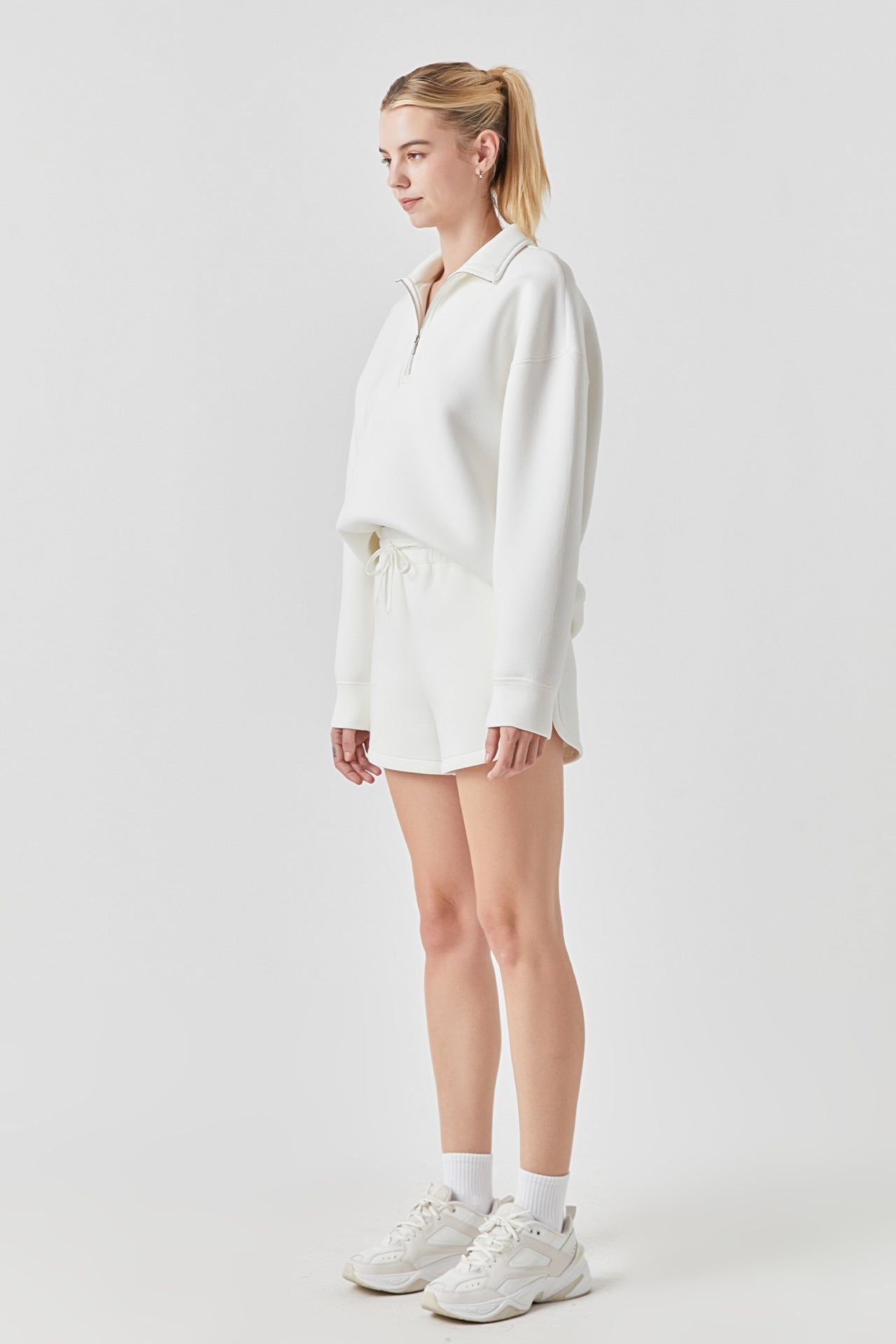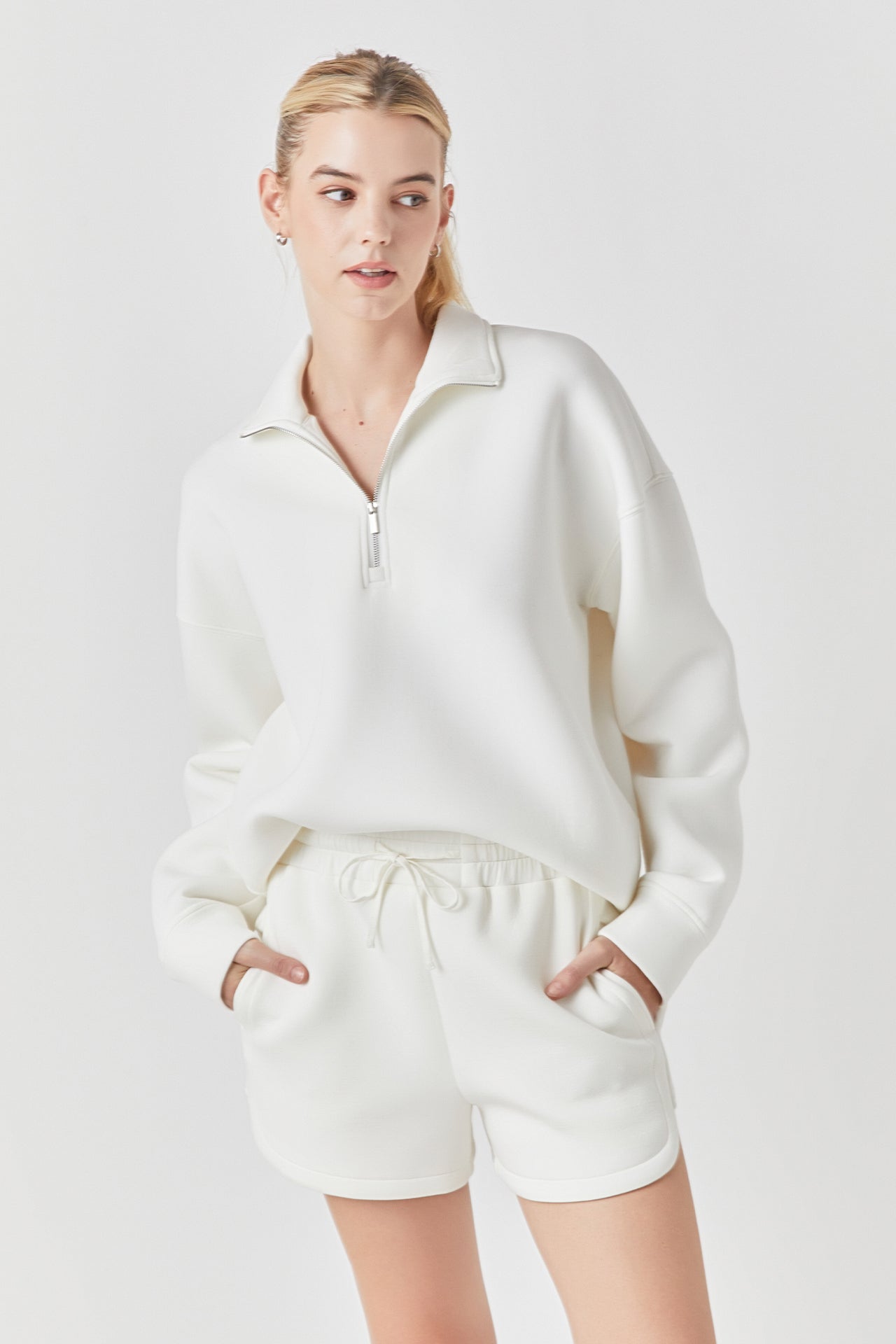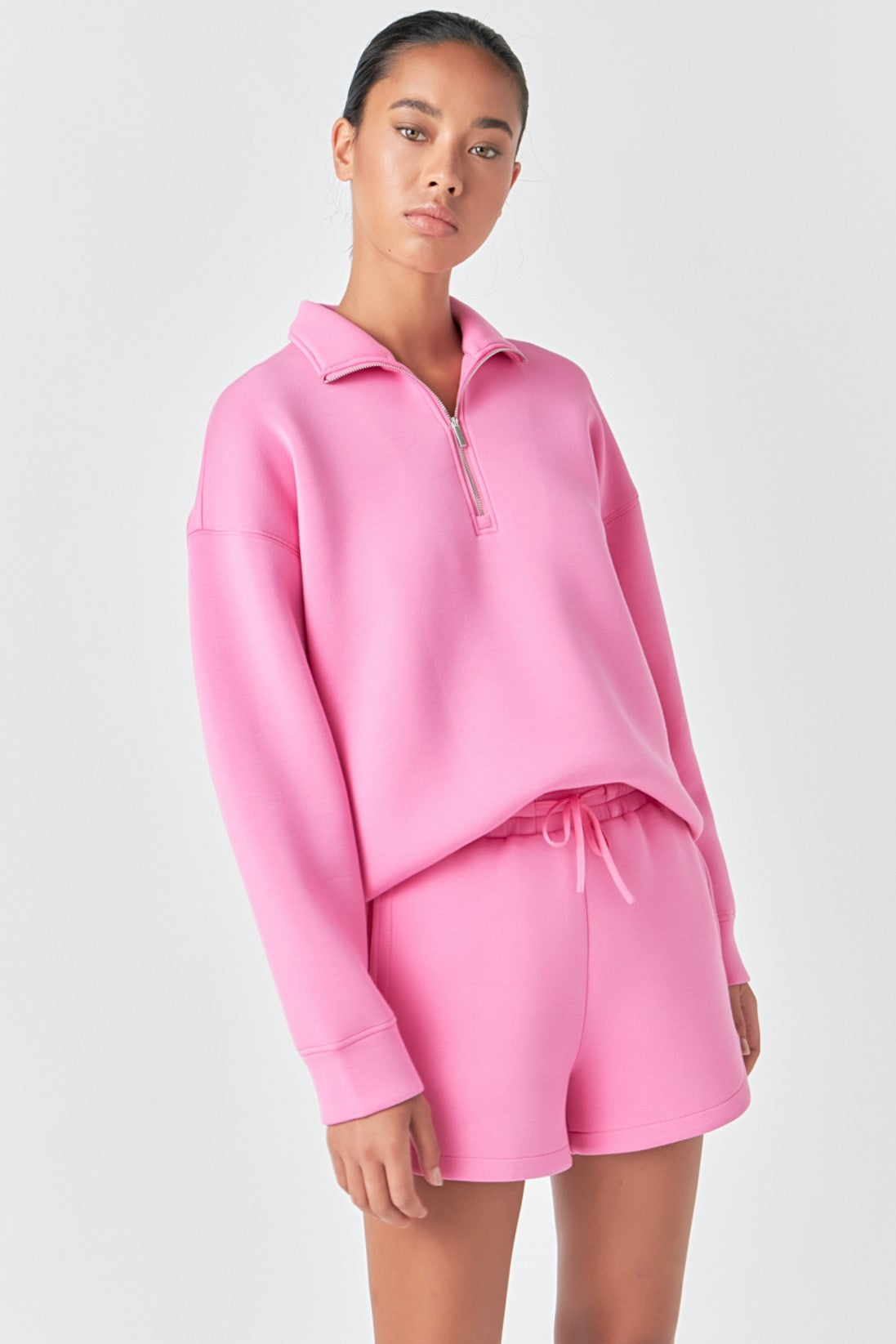 Get ready to dive into style with our Scuba Shorts! These high-waisted shorts feature an elastic waistband with a contrast strap for a flattering fit. Keep your essentials close with convenient side pockets while faux welt pockets at the back add a touch of sophistication. Perfect for any adventure these shorts can take you from the beach to the boardwalk. With their comfortable design and trendy details our Scuba Shorts are a must-have addition to your wardrobe. Don't miss out on this versatile and fashion-forward piece that will have you looking and feeling confident all season long.