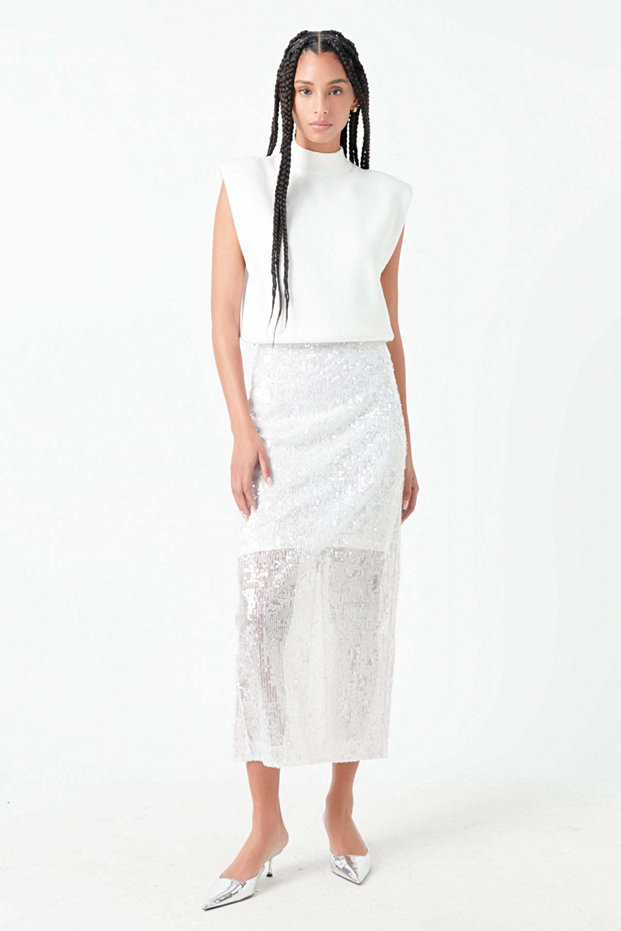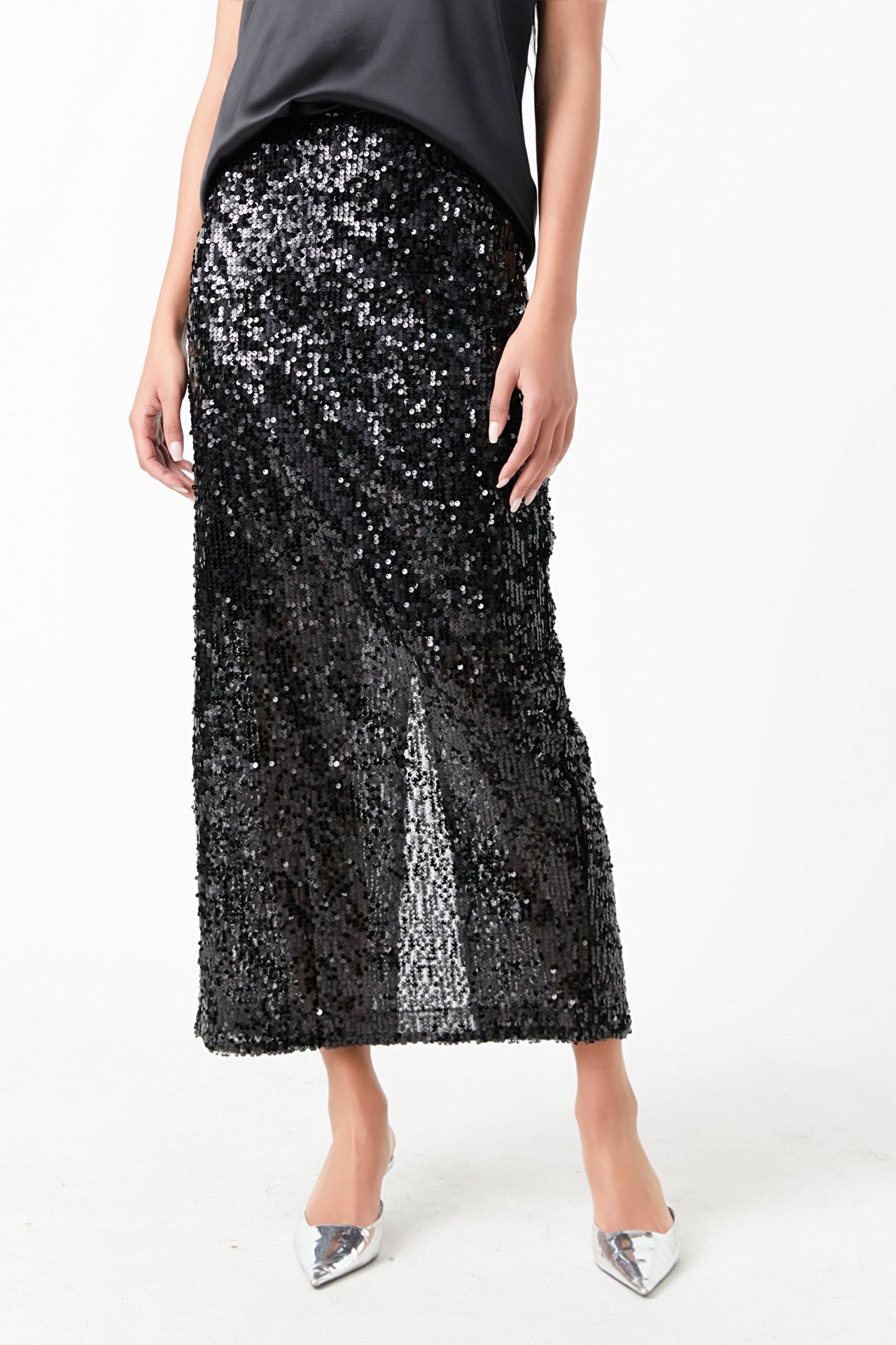 This Sequin Back Slit Maxi Skirt is an eye-catching and glamorous piece of clothing for any special occasion. With its long maxi length sparkling sequin design side zipper and back slit it is sure to turn heads. This skirt is the perfect statement piece for those special occasions and an excellent way to stand out from the crowd.