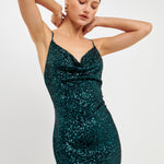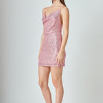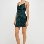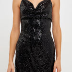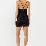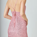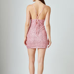 This figure-hugging mini dress is a glamorous, timeless style that will soon become one of your favorites. The sequin fabric is stretchy so it hugs your curves while being ultra comfortable. The satin straps crisscross your back and tie off to create a feminine keyhole detail. It's details like this that make this sequin mini dress simple, yet stunning.