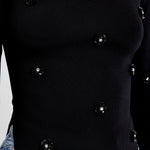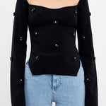 Add some glamour to your cold-weather style. This knit top is perfect for injecting some glamour into your cold-weather style. The sweetheart neckline and sequin flower detail will turn heads, while the long sleeves and fitted bodice will keep you warm. Pair this top with jeans, leggings or a skirt for a look that's sure to turn heads.