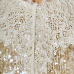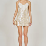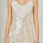 Get ready to sparkle and shine in our stunning Sequin Lace Mini Dress. This dress features a gorgeous delicate lace overlay adorned with shimmering sequins, perfect for a glamorous night out. The bodycon fit hugs your curves and the mini length is flirty and playful. The v-neckline and adjustable spaghetti straps add a touch of sweetness to this sultry dress. Perfect for parties, date nights, or special occasions. Make a statement and turn heads in this must-have piece. Get yours now and be the star of the show.