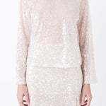 This Sequin Sheer Top is perfect for any occasion. It features a round neckline long sleeves and a regular length silhouette crafted out of a shimmery sequin fabric. The lightweight and sheer material is perfect to dress up or down for any event.